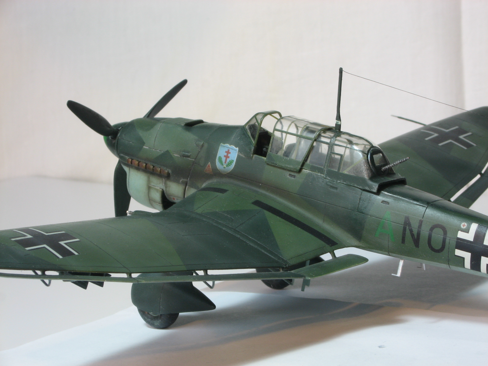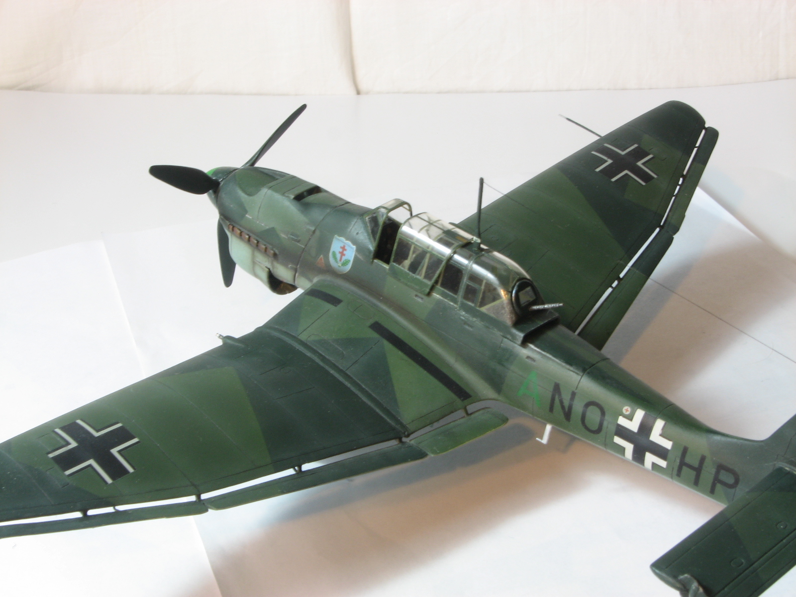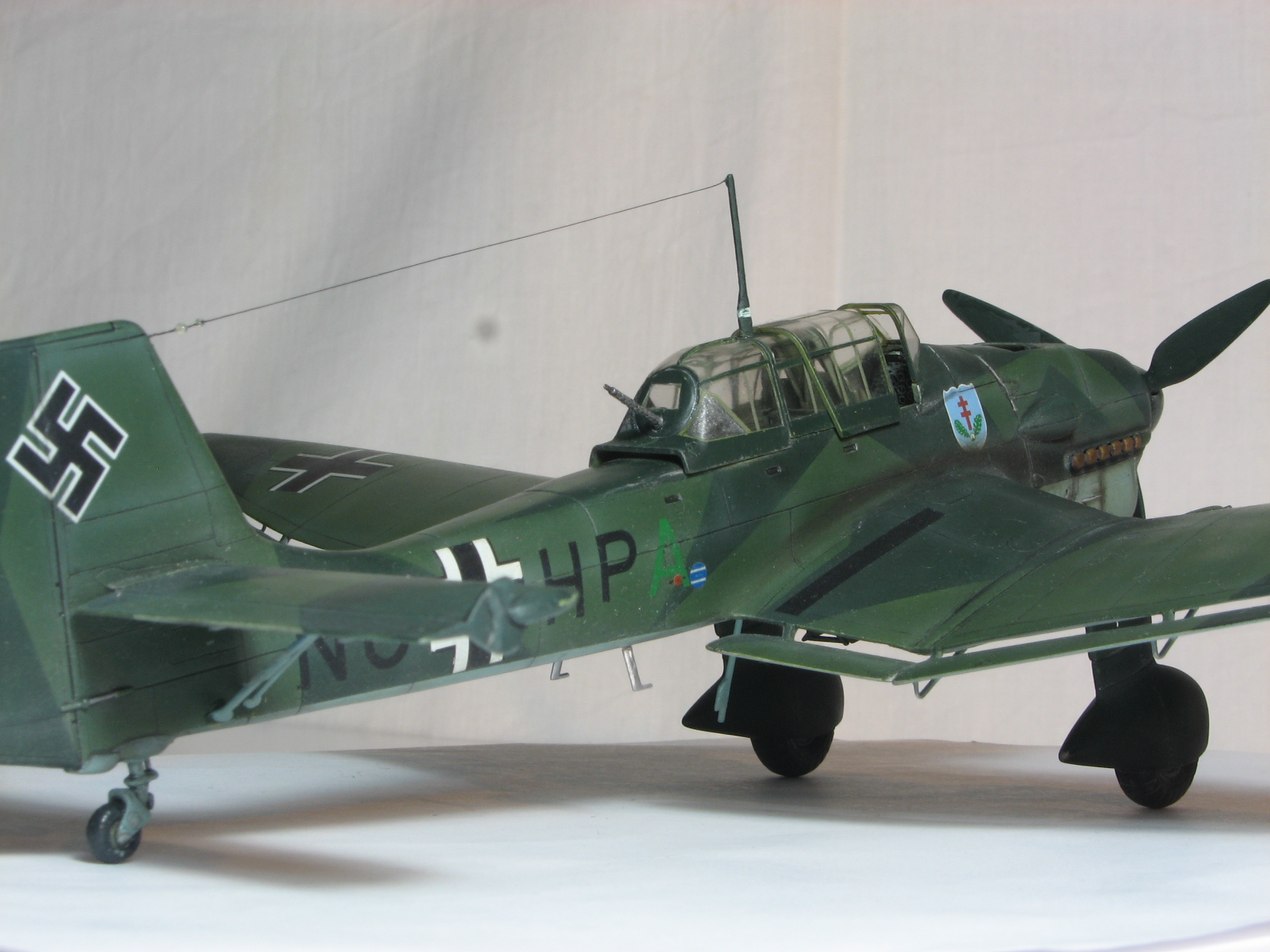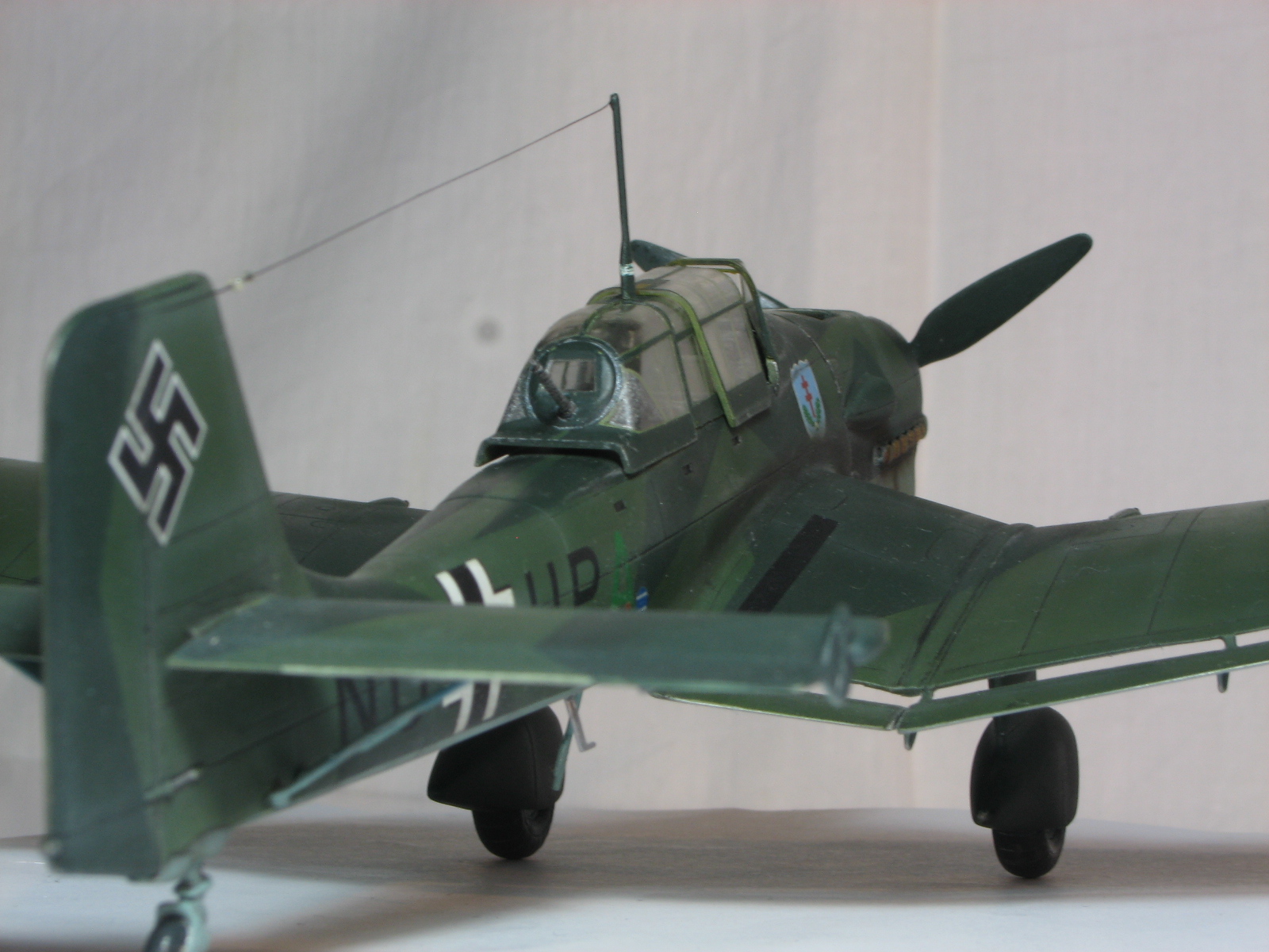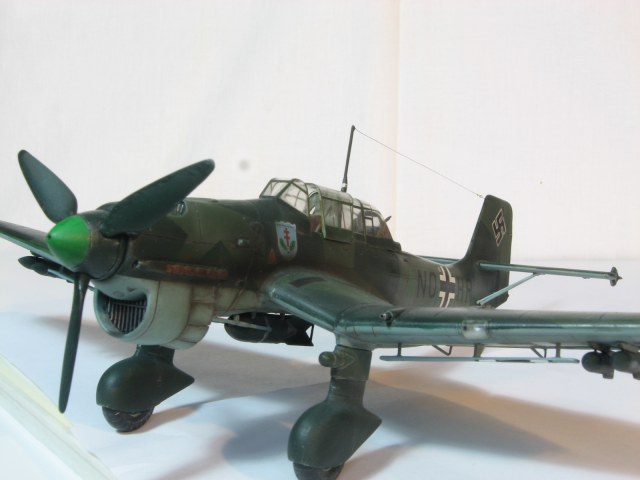 Поздравляю Всех с Новым Годом!!! Здоровья, успехов и конечно же УДАЧИ!!!Давненько ничего не сходило с моих стапелей, но слава Аллаху лёд легонько тронулся и посему хочу представить, так сказать первые, надеюсь не последние, подвижки в этом году. Итак Ju-87 B2, хотя по представленному виду сия Берта должна быть В1( издержки так сказать). По мотивам Pilot's Advanced Training School © 12, Prague/Ruzine Airport, Czechoslavakia, November 1941. Машинка так сказать исполнена в боевом применении, далеко не школьная парта, опять же издержки моего производства. Собирал из "дров" порушенной модели, поэтому практически всю мелочь пришлось делать с нуля, что определённо может вызвать массу вопросов-нареканий. Одним словом- вот что получилось. Краски- Тематический набор от Ревелл, дека от Eagle Strike. С уважением RSHA