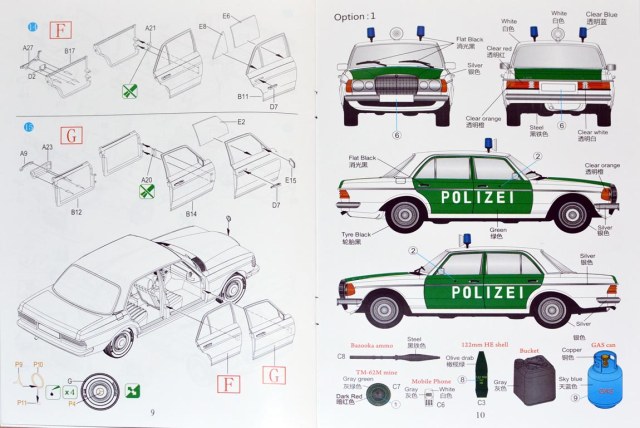 Даны 2 варианта сборки: Гражданская версия и Полицейская (с громкоговорителем, мигалкой и надписью POLIZEI на бортах)