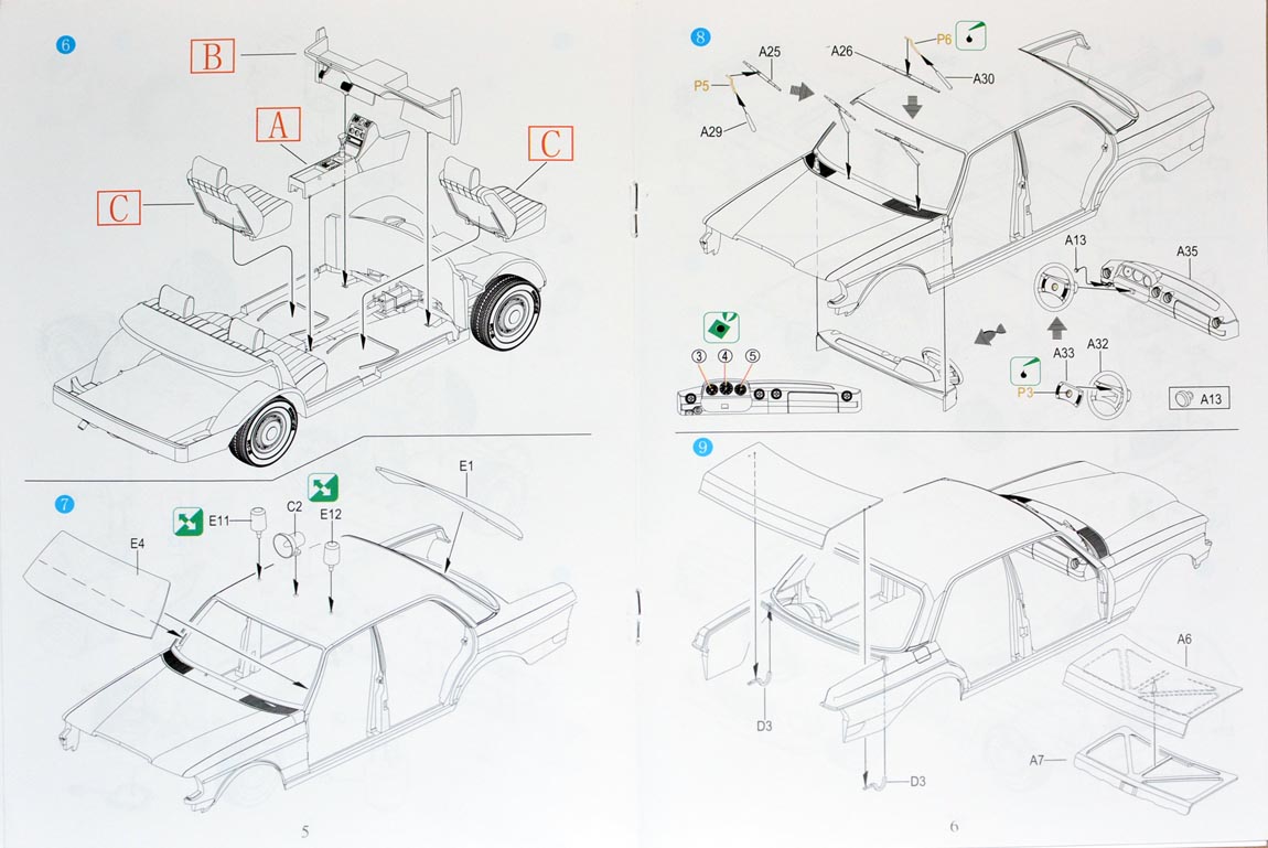 Внутри коробки находятся лавсановые пакетики с литниками, инструкция,