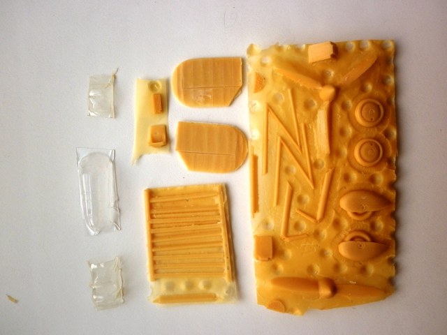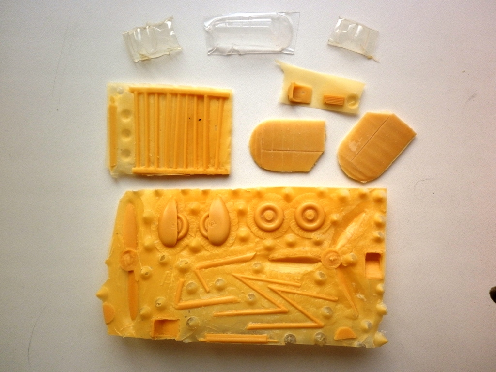 Коробки нет - в полиэтиленовом пакете вложены инструкция , изготовленная на ксероксе, запаянные в индивидуальные пакеты смоляные детали , вакуумформованные фонари на две модификации.