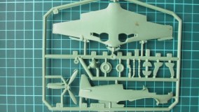 Сам набор представлен двумя рамками с деталями(количество деталей 29)из пластика салатного цвета и одной с остеклением кабины.Качество штампа-ужасаемое.Такое впечатление,что у кооператива "Хобби" то ли пластик был дармовой,то ли пресс-форму выстрагал стамеской сторож за бутылку.Сам пластик слоится даже от незначительного перегиба.На внутрених поверхностях множество следов от толкателя,снаружи-предостаточно утяжин.Облой присутствует повсюду.Смещение формы определяются на всех деталях.Надо отдать должное кооперативу "Хобби"-на фезюляже имеется подобие наружного кроя.Остекление кабины представлен тремя вариантами.Сам пластик мутный,неровный.