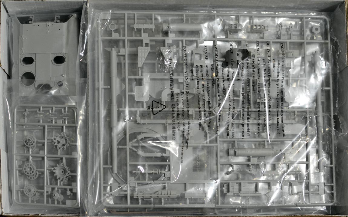 В коробке: 18 литников, из них: 4 коричневых литника с наборными траками (тут при сборке придется по выражаться не литературно),