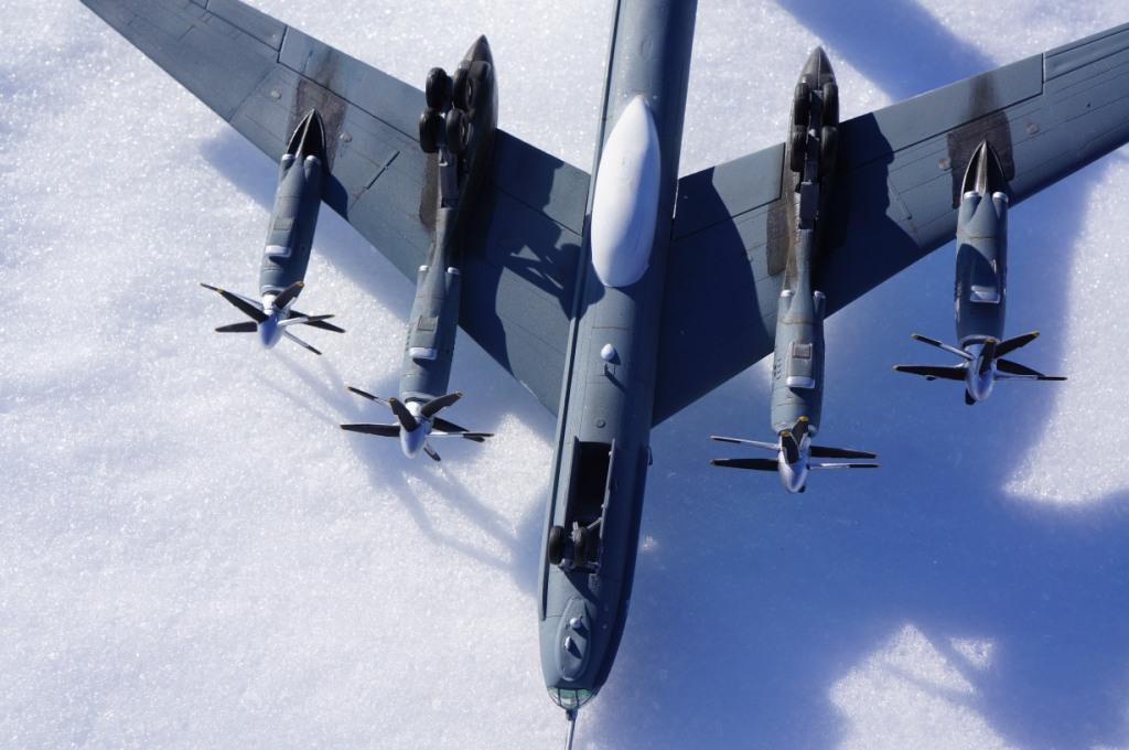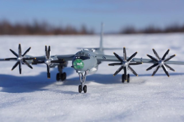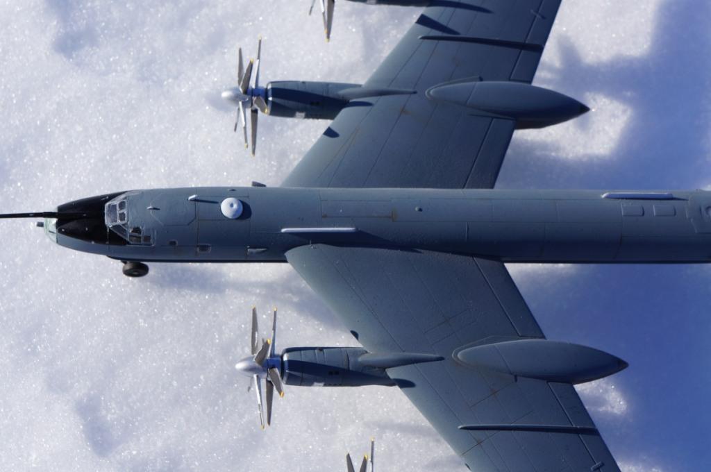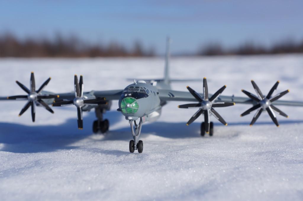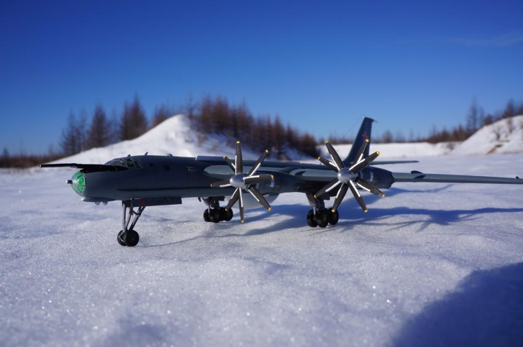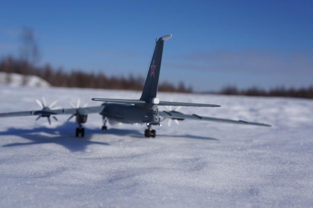 Всем здравствуйте!Представляю Вашему вниманию мою переделку самолета Ту-95РЦ от Звезды в дальний противолодочный самолёт Ту-142МЗ,предназначенный для обнаружения и уничтожения ПЛАРБ противника в районах патрулирования, дальней океанской разведки,а так же дежурства в системе поисково-спасательной службы! Ту-142МЗ эксплуатируется в МА ТОФ на Дальнем Востоке и в ВМС Индии.Изначально идея показалась простой, спилить пару обтекателей сделать пару антенн и все, но не тут то было! Если корма подалась перепилу легко,срезал обтекатели со стабилизатора из них же сделал магнитометр на киле из литников сделал антенны кормовой установки,то с носовой частью возникли проблемы из-за несоответствия формы кабины штурмана навигатора и кабины пилотов.Остекление пилотов я перекроил а вот штурманскую пришлось оставить прежней.Изменил форму обтекателя под кабиной штурмана,сделал фары,добавил тепло-пеленгатор системы Саяны, по левому борту установил антенну,добавил астрокомпас и недостающие антенны сверху.Красил акрилом.Что из всего этого получилось судить вам! Прошу учесть что это мой первый перепил!!!!!!!