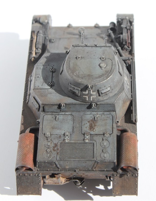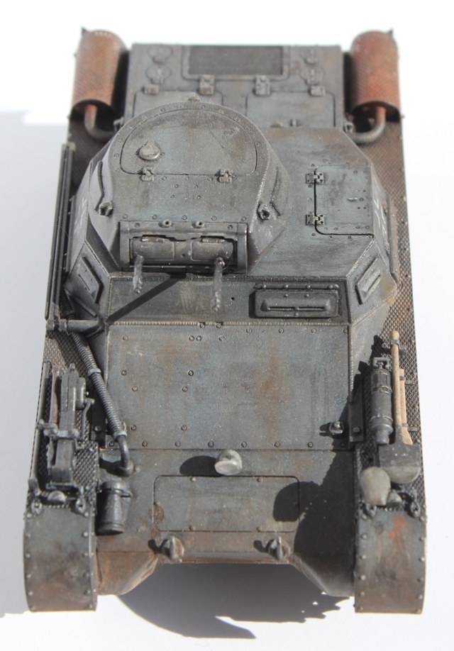 Провис гусениц не исправлен, на стыке верхней приты подбашенной надстройки видна щель по всему периметру (болячка Драгона), шов на гафрированной трубе выхлопной системы не убран, грубоваты крюки на башне, подточить не мешало бы. А в остальном вполне себе достойная работа!