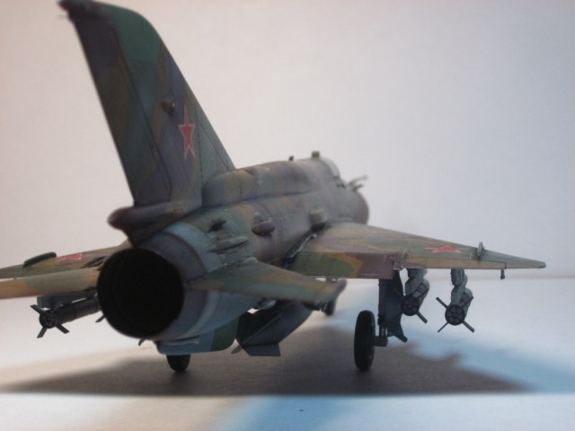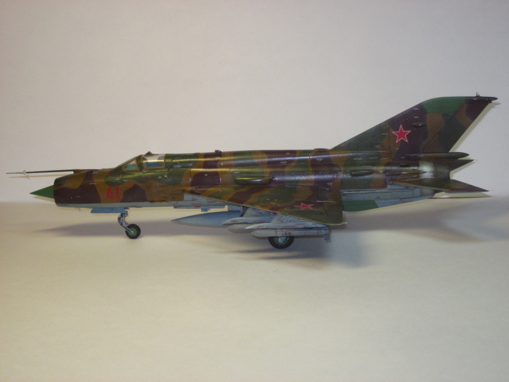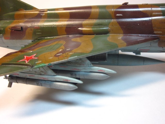 Всем крапчанам доброго здравия! Давно ни чего не выставлял ,но вот свершилось. Перепил был долог. Многим эта модель знакома-поэтому во всех подробностях описывать не стану.При сборке использовал набор фототравления ЭДУАРД, колёса ЭЛЬФ, пито МАСТЕР,краска и лак АКАН,декали БЕГЕМОТ .В процессе работы переделал наплыв ниш шасси выше крыла, добавил трубопроводы , баллоны кислорода и сжатого воздуха в те-же ниши. Из игл от шприцов смастерил штоки аммортизаторов стоек шасси и штоки гидроцилиндров уборки и выпуска шасси и щитков. Добавил самодельные бано. Фонарь сделал открывающимся.Накатал клёп.Ракеты С-24 самодел из подручных материалов. Борт 41 имеет привязку к 115 Гв.иап 2аэ.Аэродром Кандагар,Афганистан 1980-81г. Приятного всем просмотра!