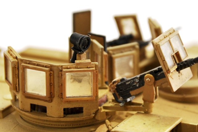 - Пусковые установки дымовых гранат, требуют слишком много доработки что бы приняли хоть какой то адекватный вид. Возможно будь они из нескольких частей было бы проще, но вырезать в них прямоугольные отверстия сущая мука (ради интереса сравнил фото этих же пусковых установок у trumpeter и dragon разницы не заметил, местами даже чуть хуже)