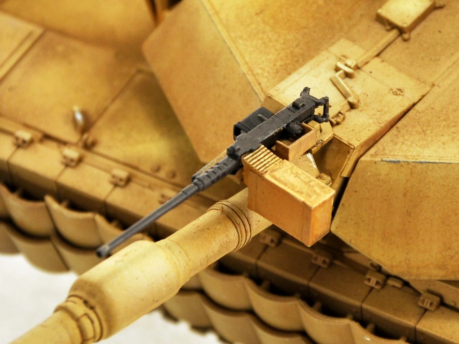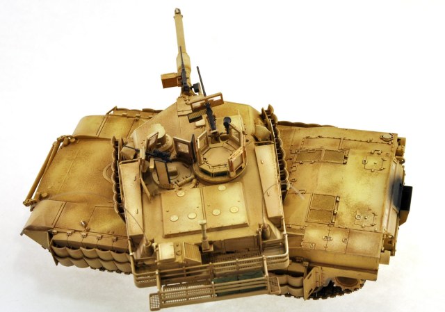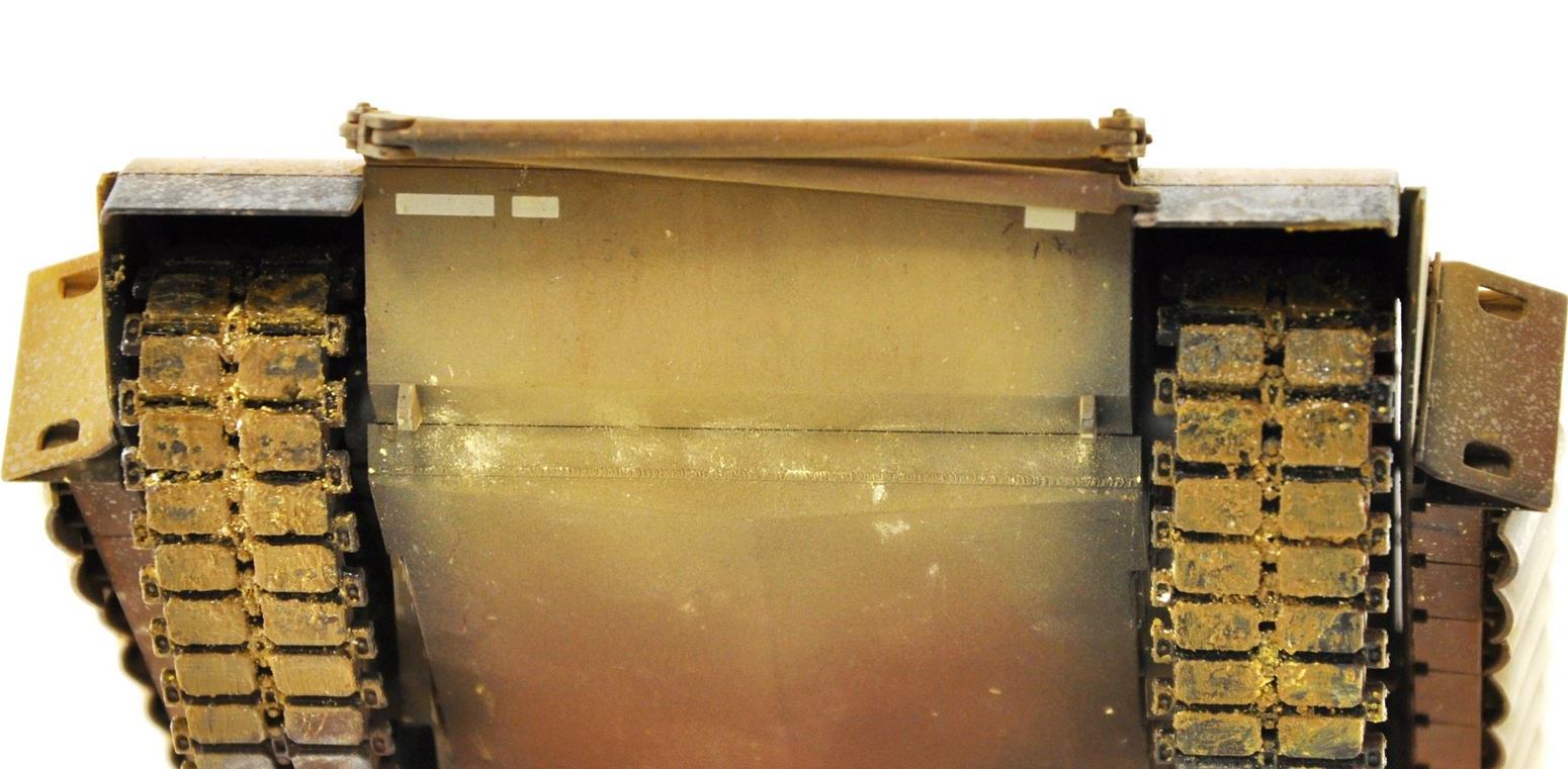 Из-за отсутствия деталей модель кажется игрушечной , дело ведь не в том , что на модели должна быть тонна грязи . Натереть пигментом пулеметы хотя бы ... Машина как будто после мойки . Если она так выцвела , то на ней обязаны появится хоть какие-то следы эксплуатации .Ладно , если бы танк был парадным , но тогда не нужно было обмазывать гуси пигментом и делать такие сильные высветления .