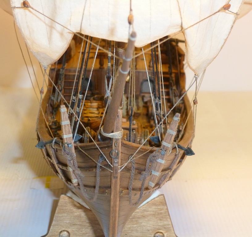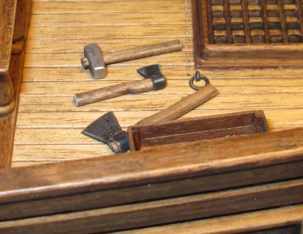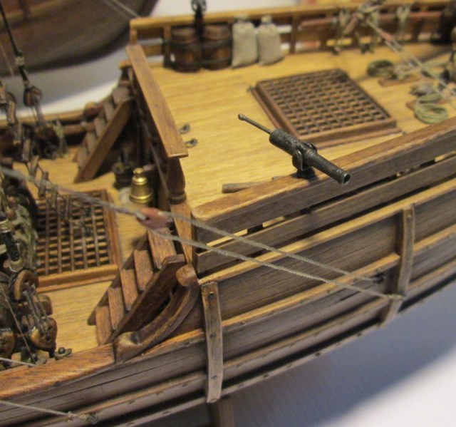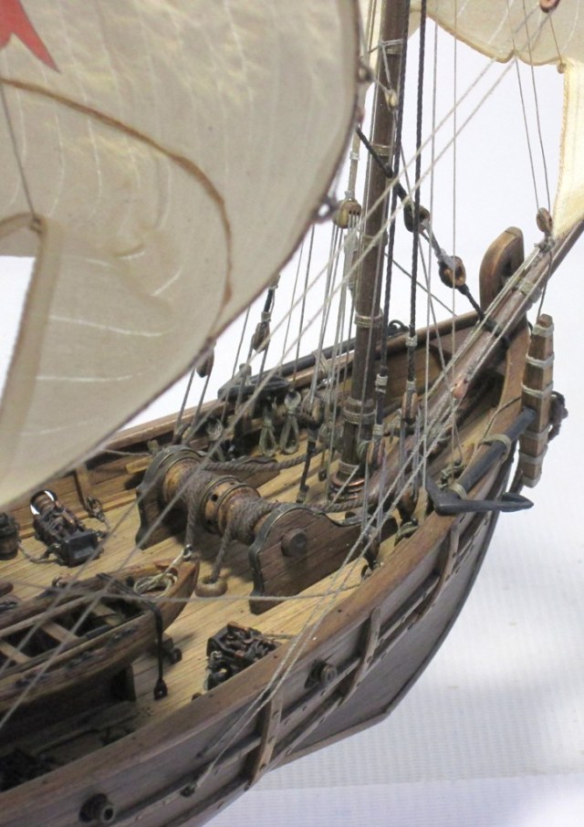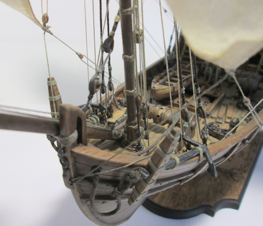 Единственно, что не понравилось, но автор, есть автор, на его усмотрение. Это кормовой литой фонарь, можно было бы попробовать переделать ). И как по мне, немного странно смотрится разбросанный инструмент по палубе, но опять же, на усмотрение автора )