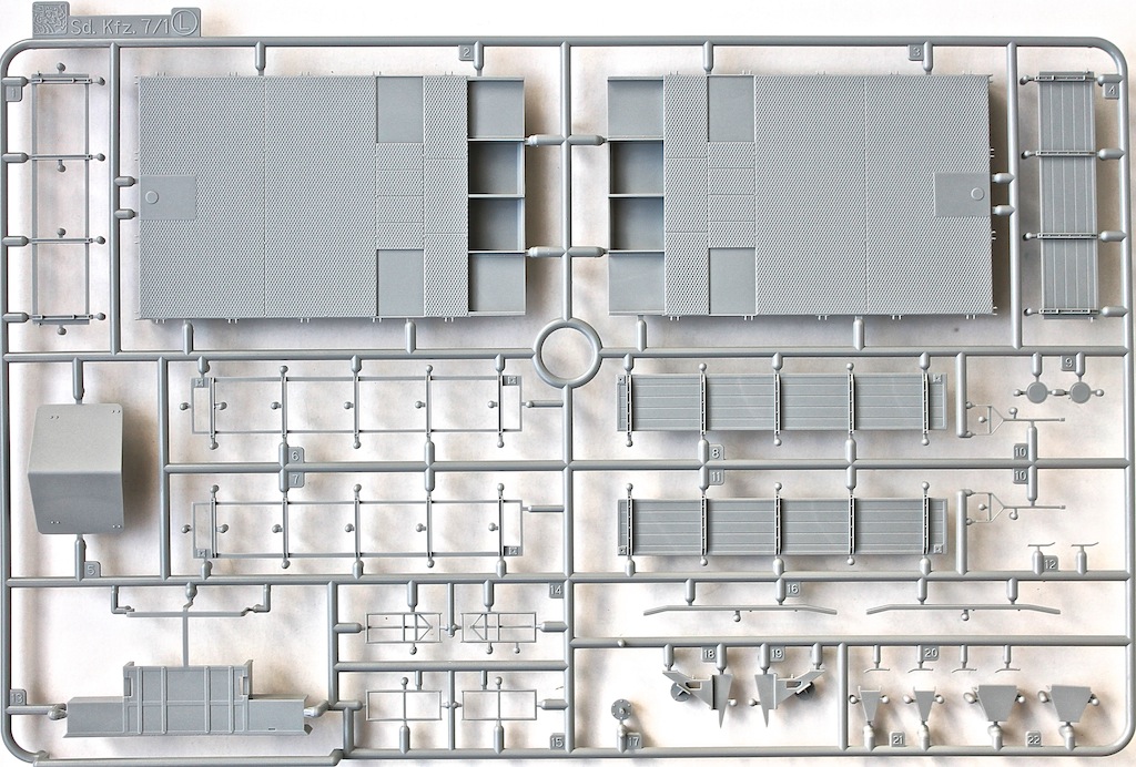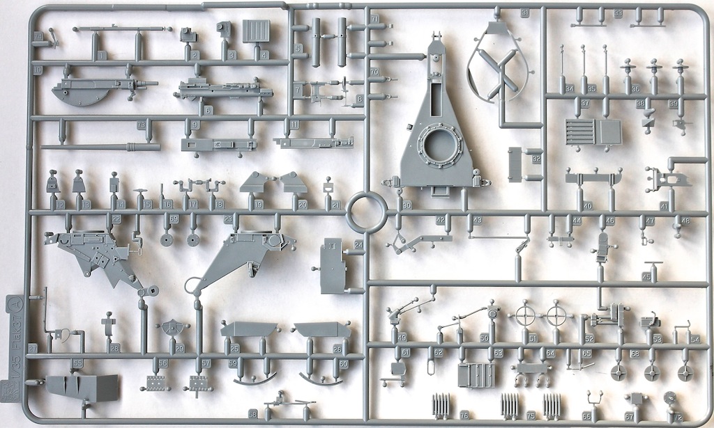 Отличная модель немецкой ЗСУ. Можно просто открыть коробку и собирать. Даже ствол можно не менять. К монолитному, пластиковому стволу, отлично проработанный пламегаситель. Производитель дает два варианта бортов. Сетки и деревянные. Сетки травленые. И третий вариант, вообще без бортов. Траки Magic Track. Теперь, в принципе, понятно от чего эти ЗСУ такие дорогие. Я свою покупал за 2200.