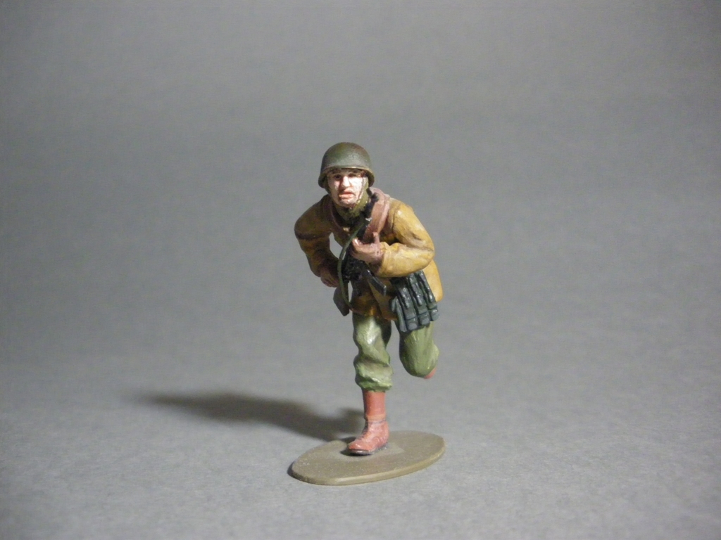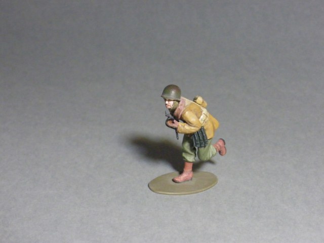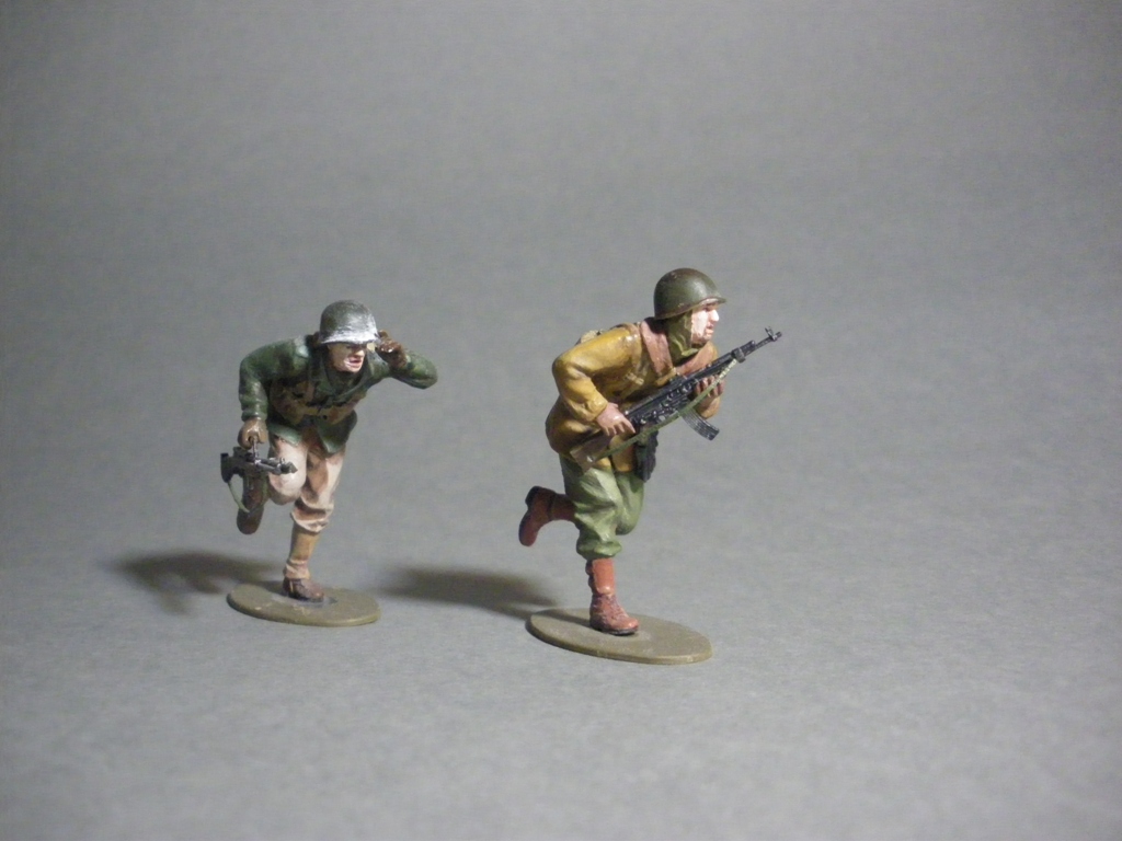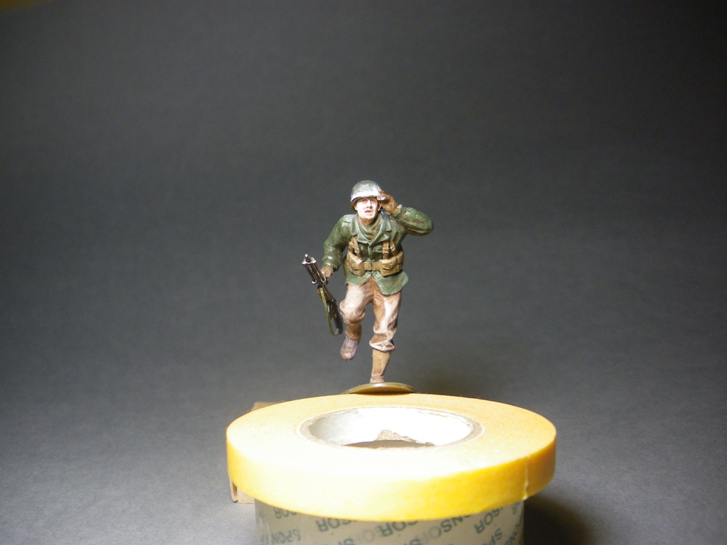 Эти два бойца (был ещё третий) были вложены к тамиевскому шерману, на простора интернет была обнаружена фотография двух солдат бегущих по бельгийской улице, хоть и позы и форма и оружие отличаются решил сделать диорамку, до которой руки так и не дошли, но покрасить одно прошлой и другого поза-прошлой осенью всё же дошли.