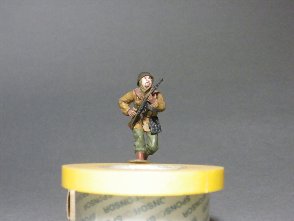 Первый боец(тот, что со штурм гевером) расписан ревеловскими эмалями, второй - акрилом АКАНа. Со вторым работать лично мне интересней. Лица сначала были у обоих ревелом, но так как первый боец получился не очень, переделал маслом, но не так выразительно, как на втором(согласно ещё одной фотке первому пририсовал бороду)