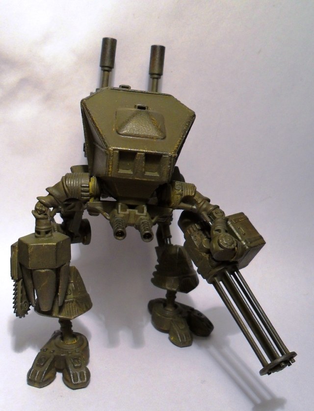 Думаю, если покрасить хотя бы пушку, пулемёты, шланги, пилу чёрным, пройтись грифелем, пройтись по впадинам чуть более тёмной краской, то модель немного преобразиться.