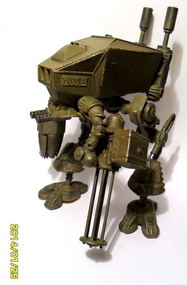 Стационарное вооружение- 2-х свольная импульсная пушка. сменные блоки- шестиствольная 20-мм пушка Гатлинга, клешневой захват+пила.