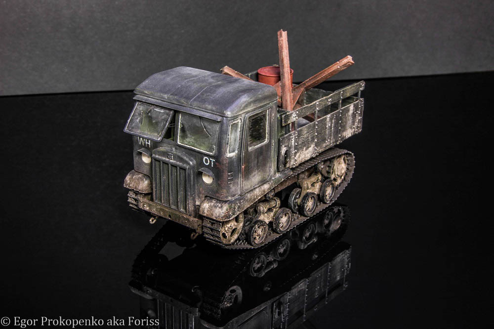 Представляю Вашему вниманию свою крайнюю модель трактора СТЗ-5 от фирмы Вулкан, доделал ее еще в прошлом году, все никак не мог нормально отснять ее, экспериментировал с фото. Про сам набор уже говорили, он достаточно дубоват, но приложив немного усилия из него все таки можно получить что-то похожее на прототип. При этом собирается и стыкуется он не плохо, есть даже двигатель, проблемы в основном в переразмеренности некоторых элементов и убогих траках. Саму модель планировал изобразить захваченной и перекрашенной в немецкий, который в результате жесткой эксплуатации начал "слазить" поэтому местами проглядывает зеленый цвет.