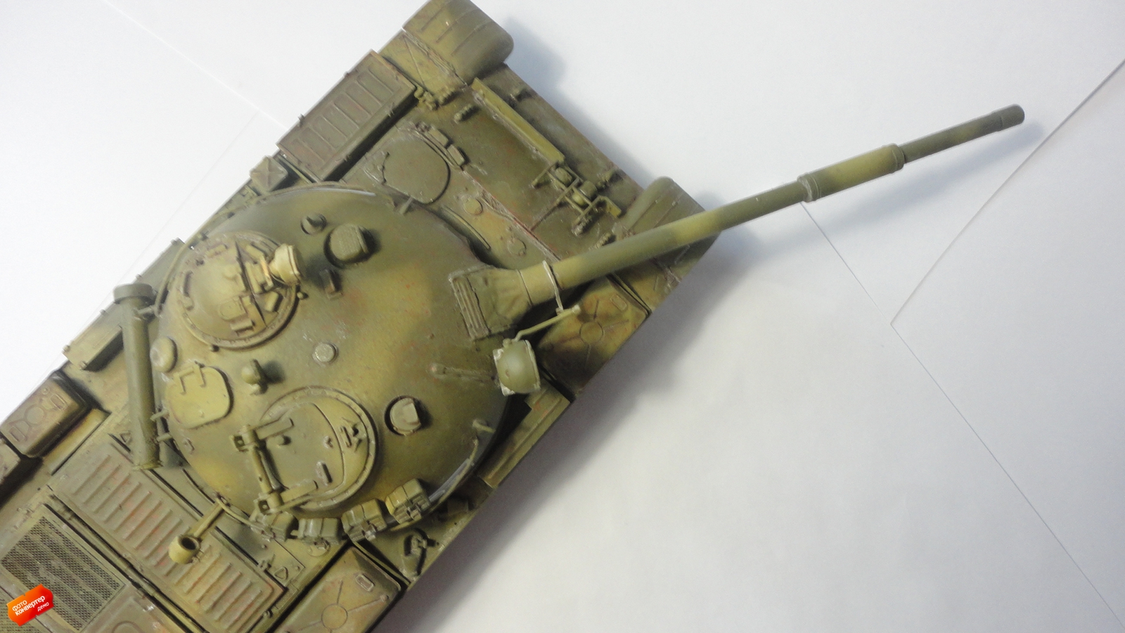 Модель Т-62 образца 1972 года от Trumpeter. Решил капитально переделать, пилил и шпаклевал 2 недели, т.к многие детали были попросту потеряны искал детали в наборе Т-54А от того же трумпа.