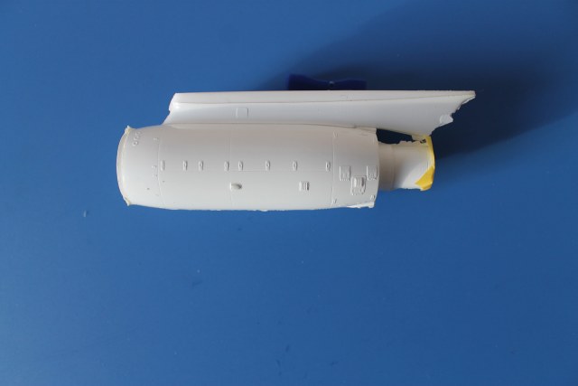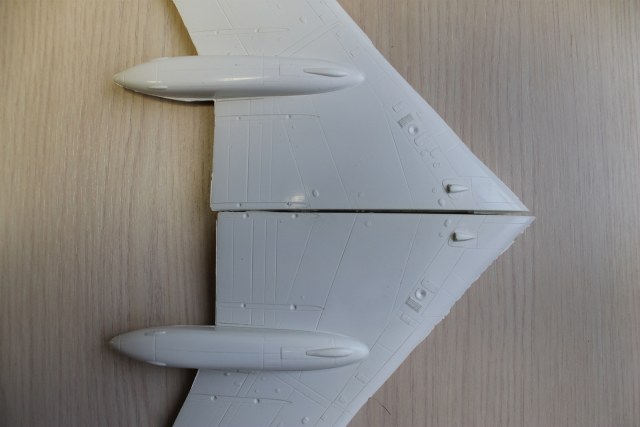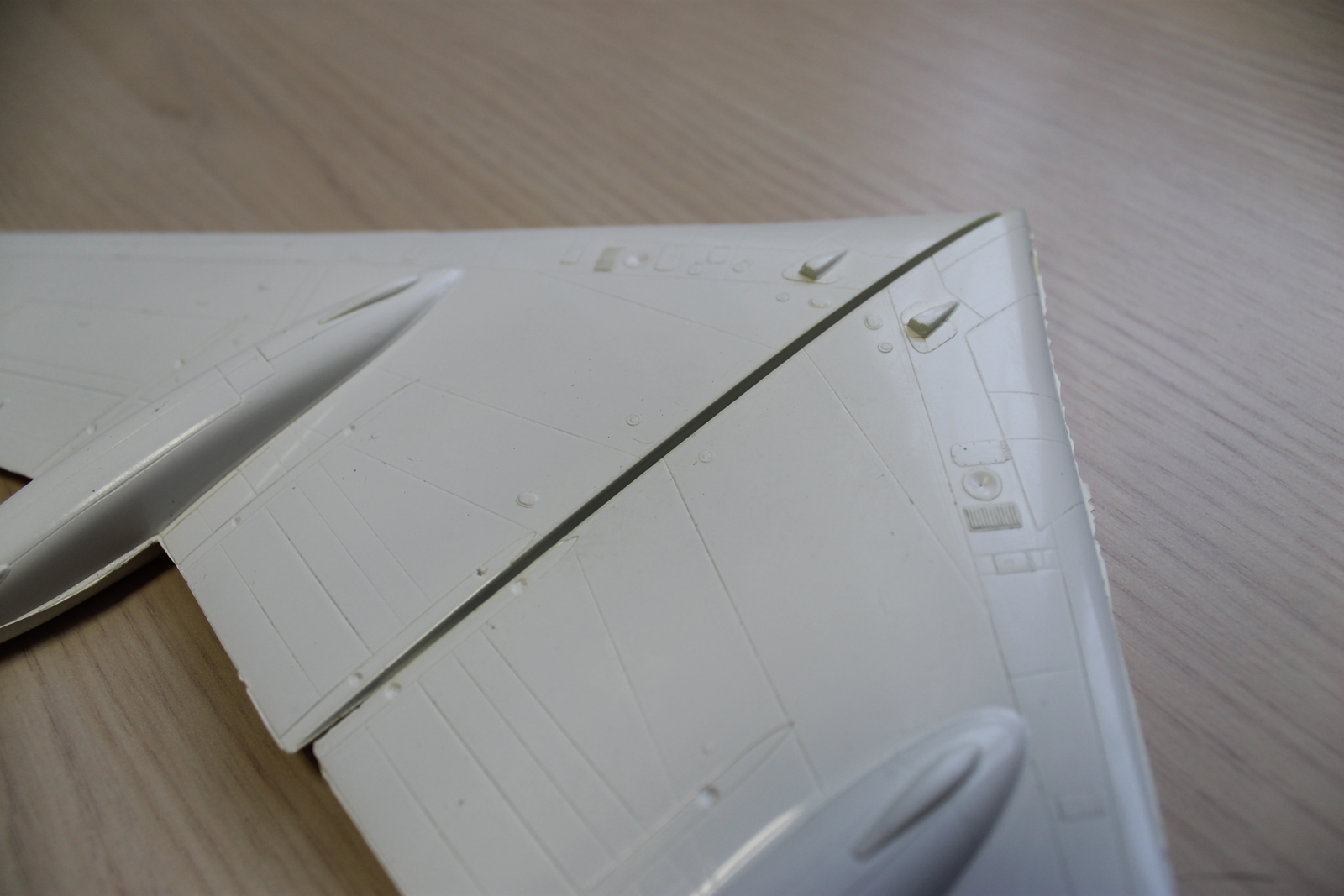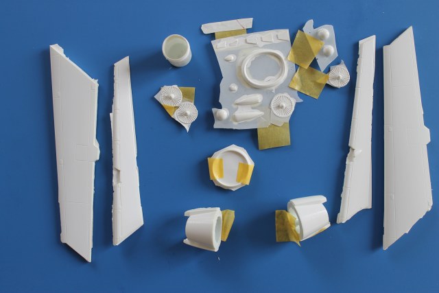 Честно говоря, сама заготовка никуда не годится. Шасси в самом наборе - ну очень нужны. У этого самолета богатая механизация крыла, и в опции сборки эта выпущенная механизация обязана присутствовать, я бы даже интерцепторы поднял и реверс двигателя - тоже.