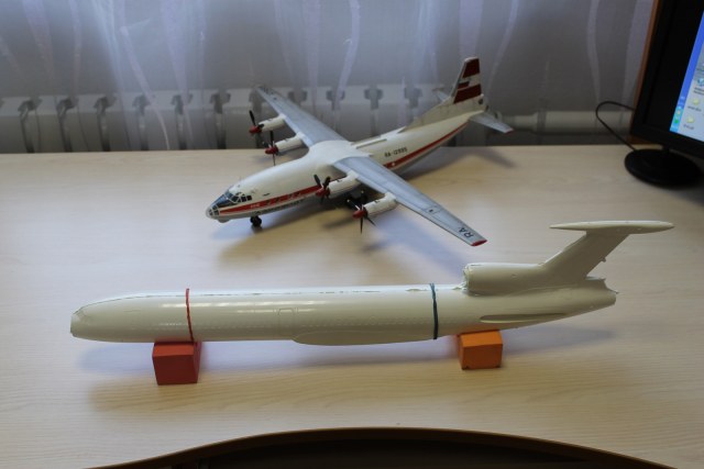 На счёт механизации крыла вы правы На Мках Вместо 3х шелевых закрылок стояли уже 2х щел-е,да и крыло в корневой части имело уже другое сечение.Такую модель можно было готовить к подвески.Да ещё с перестановочным стабилизатором,точно заходит на посадку!Пока буду выпиливать проёмы под иллюминаторы А модел уже выпустит свой ТУполь-донор-клон стоек