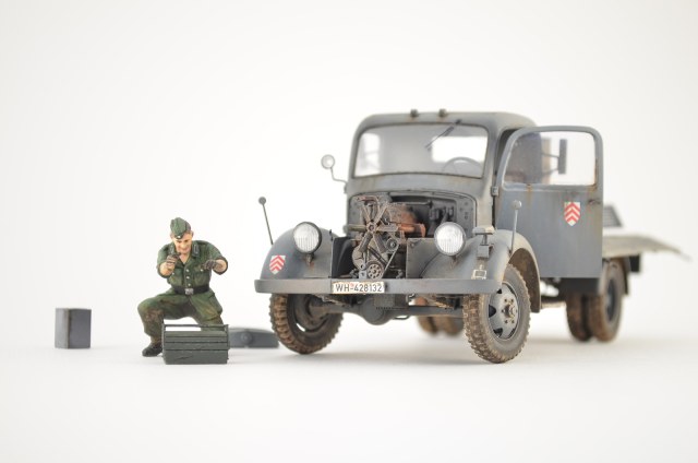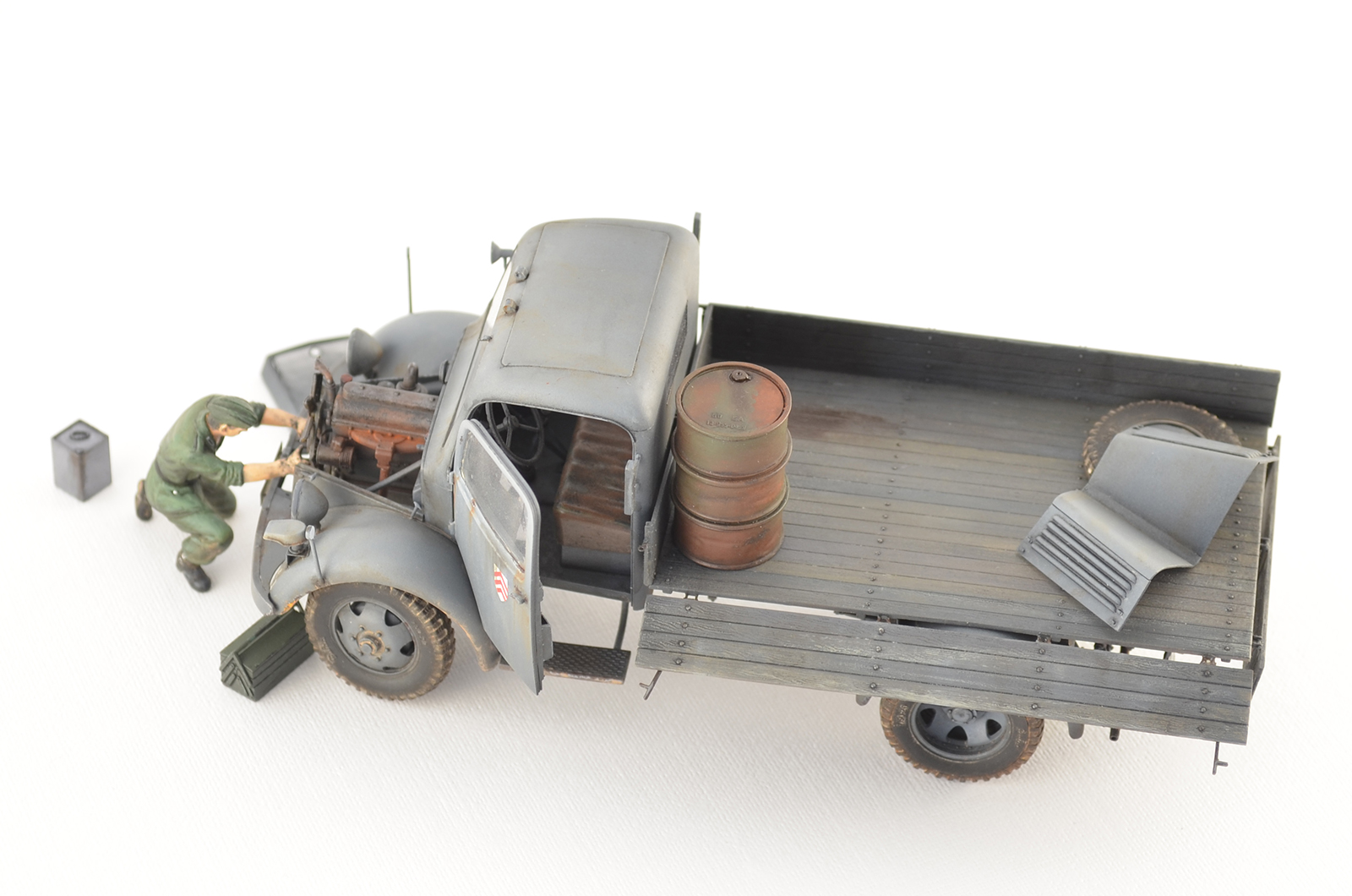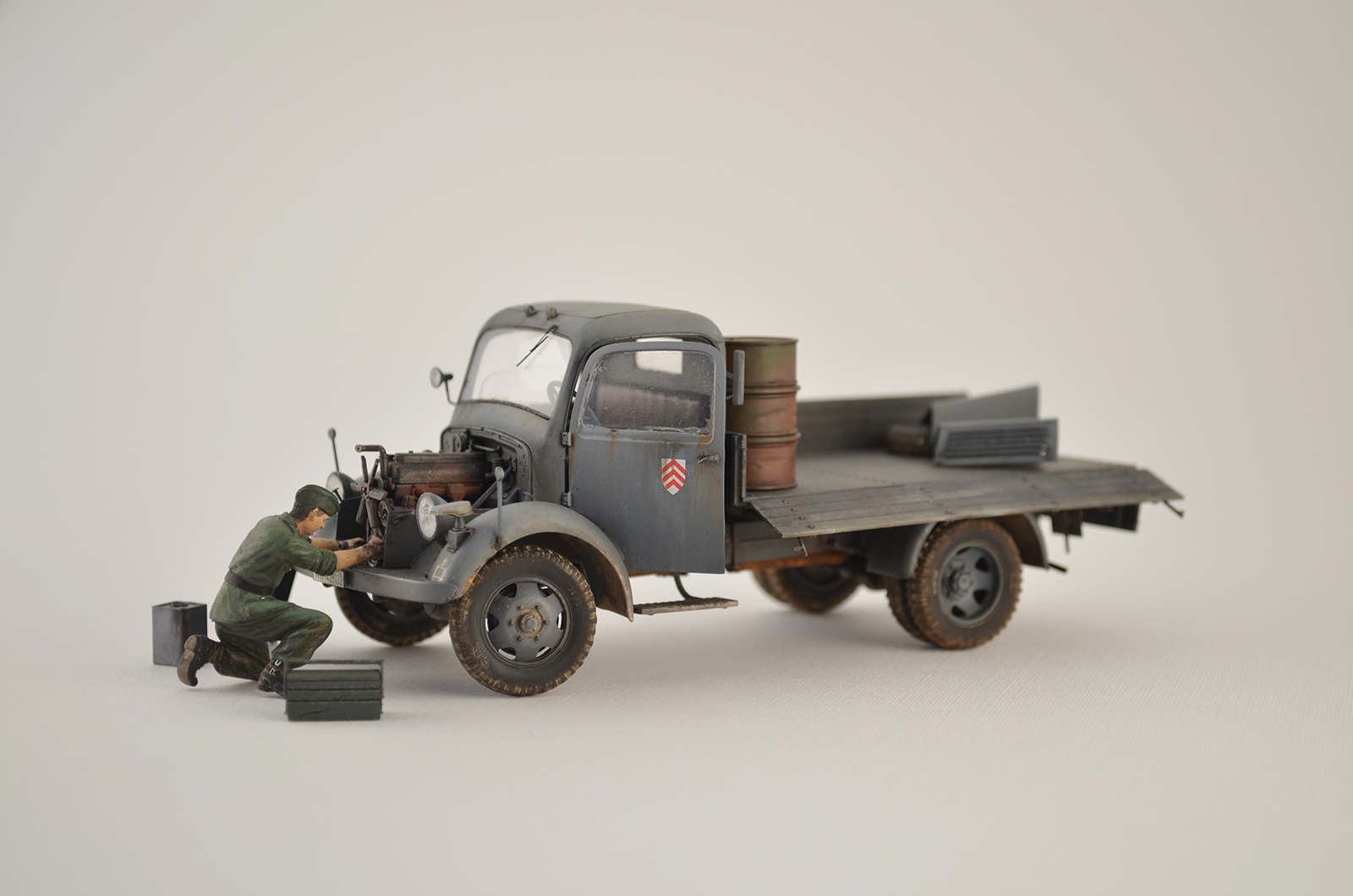 Собирал Миниарт впервые. Деталировка порадовала и в тоже время огорчила потому, что не потерял, то сломал. В итоге решил сделать грузовик для диорамы "ремонтная мастерская", но руки видно не скоро дойдут.