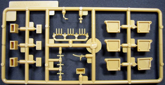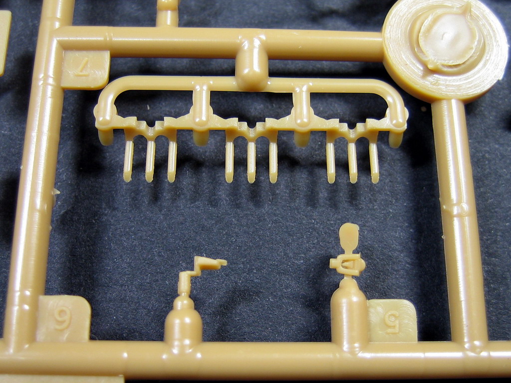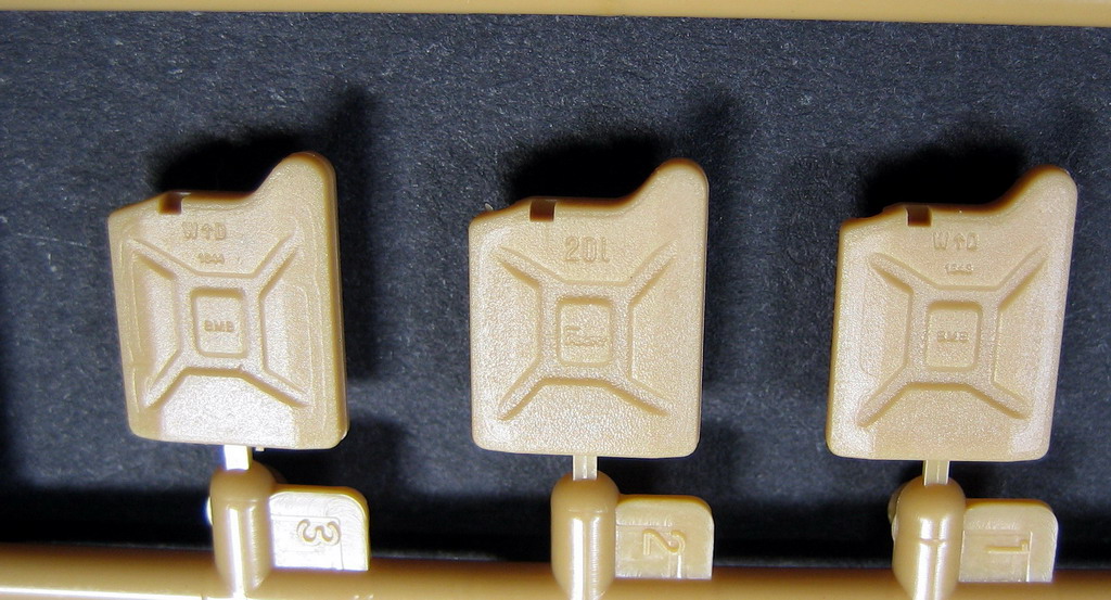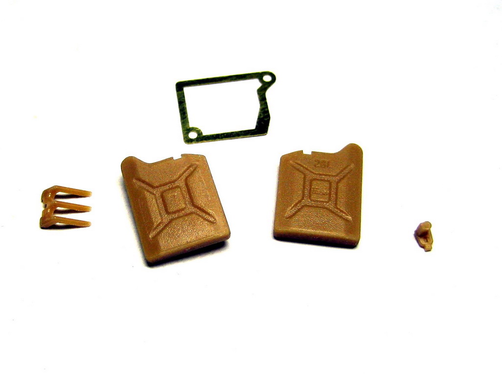 В коробке с боковой загрузкой находятся 6 одинаковых литников из пластика светло коричневого цвета. Качество отливок хорошее, без облоя, утяжин и прочих неприятностей. Также имеется плата фототравления для канистр.