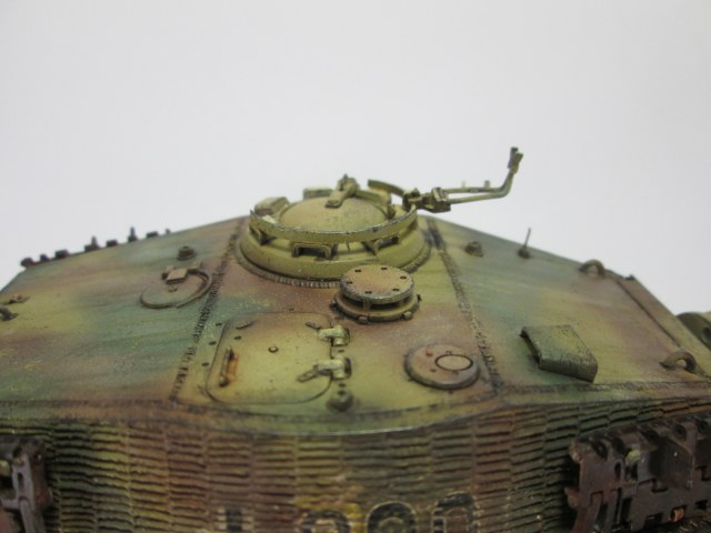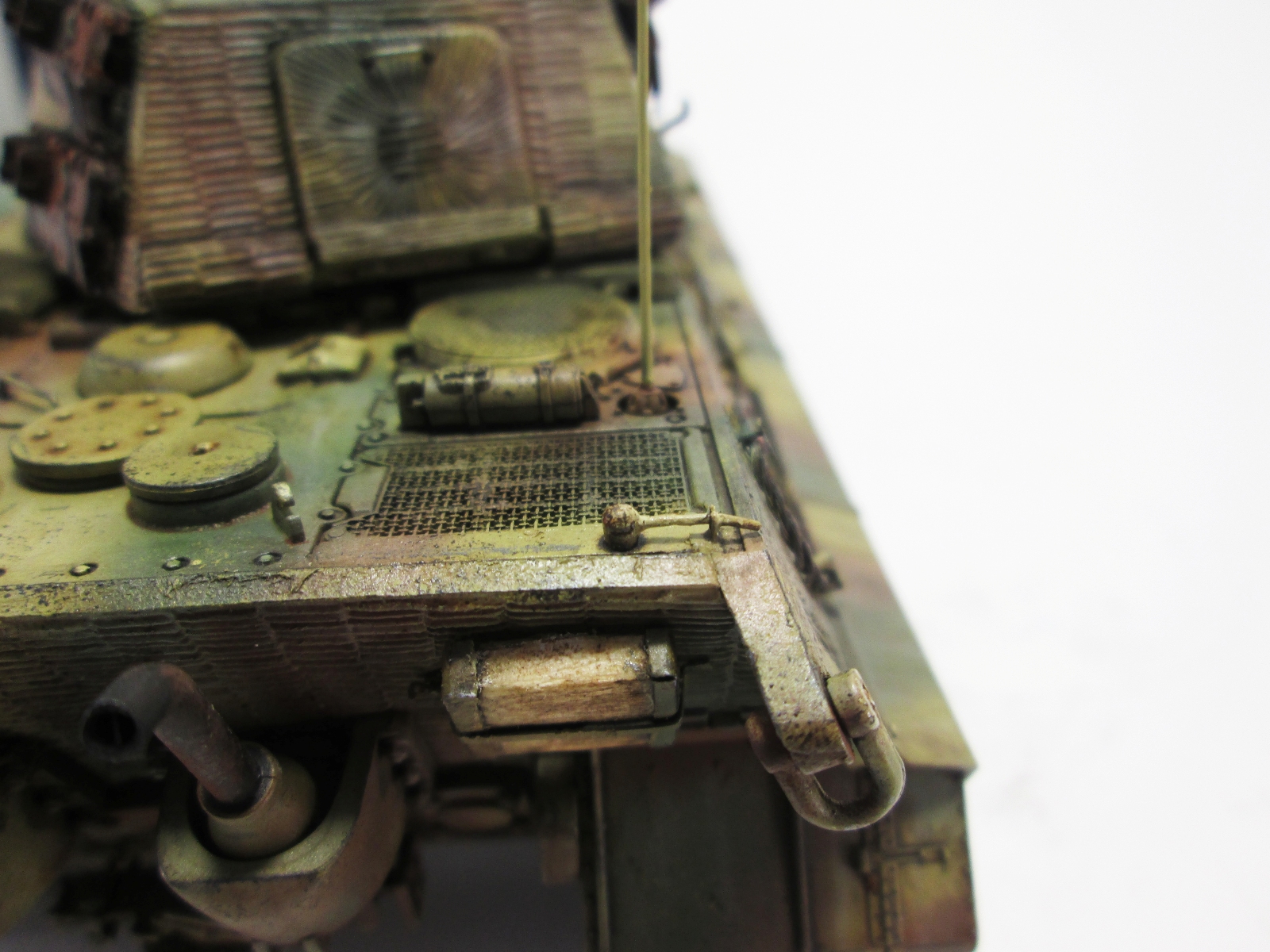 Не совсем соглашусь с Вами. Как раз по этому чертежу и делал, по-этому и стопор сделал (фото). Так там и обозначено, что 4 трубки стали ставить с августа 44 года, а бронекрышки только с декабря, поэтому в этот период (август-декабрь) вполне возможно выпускались выпускались танки с 4 трубками, но без бронекрышек.