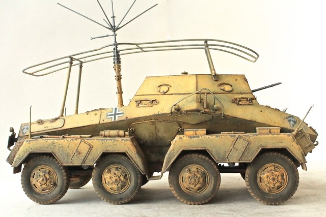 Значит, собирал из коробки. Добавил пулемет, габариты и еще что-то. Не помню. Красил акрилом Vallejo. Масло, пигменты, как всегда, MIG.