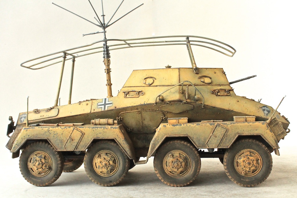 Вставки видны только визуально - красятся в базу....так же запитывается матрац и на 6-колеснике Sd Kfz 263, на 232(Fu) штангой(труба с фидером внутри), такая же штанга ОБЯЗАТЕЛЬНА на Т-26 с поручневой антенной..
