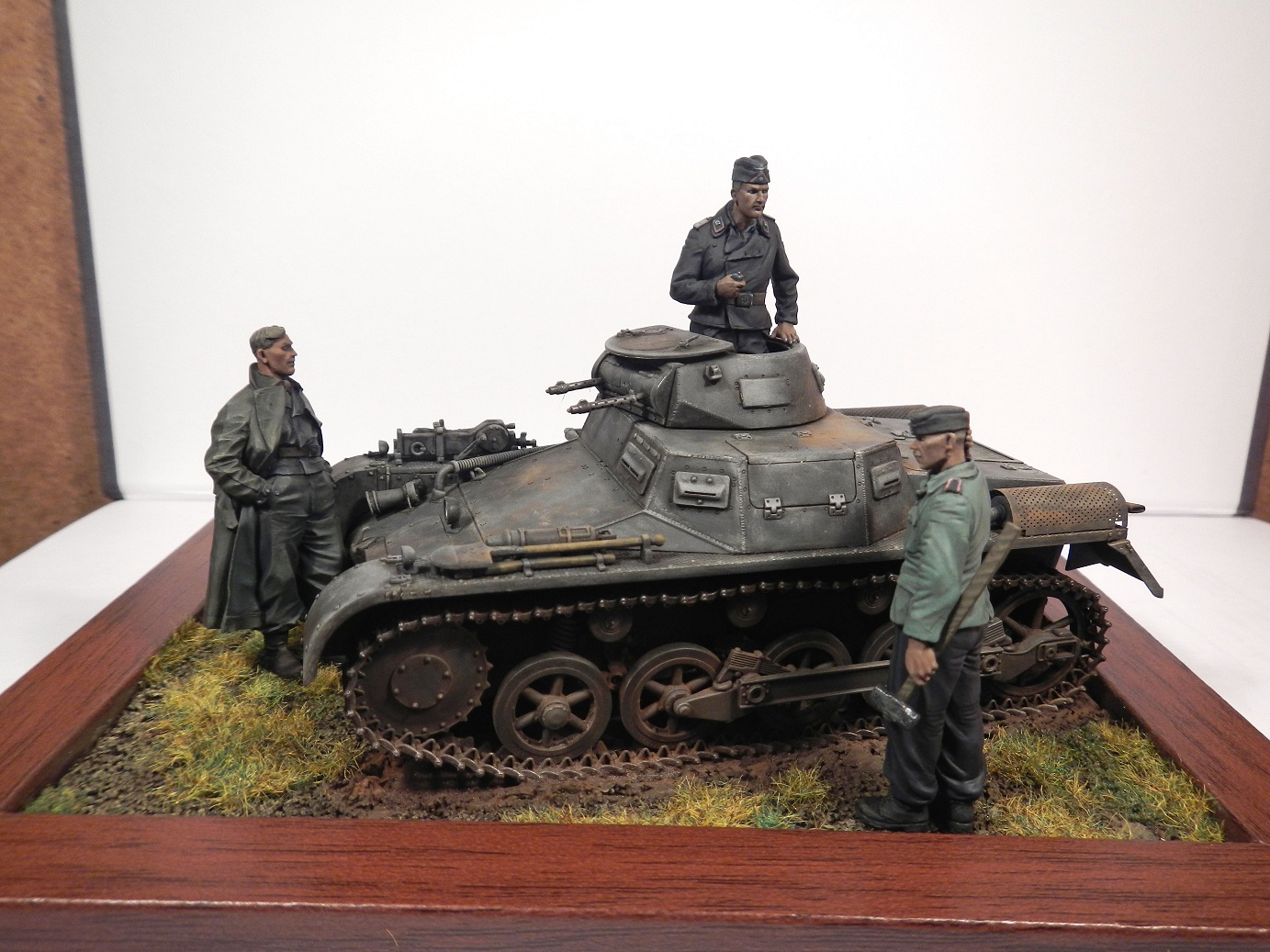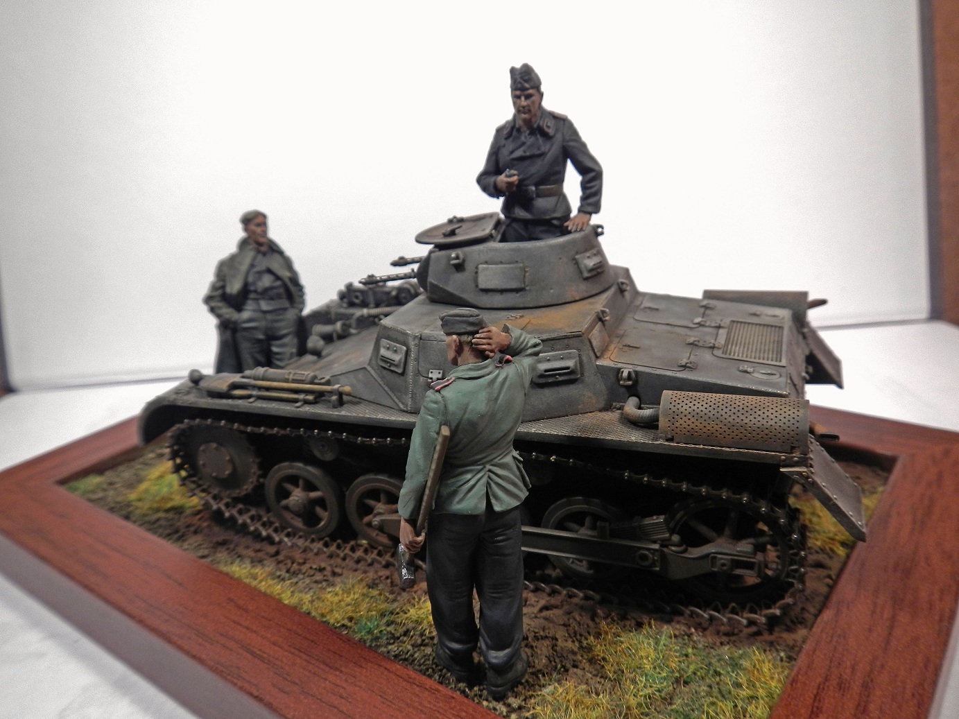Материалы : Танк от драгона , фигуры от ТАНКа 8)) и Альпина. Танк : акрил тамия , разные пигменты в.т.ч. тамия и миг , смывки маслом. Выделение граней графитом . Покраска мелочи - акрил валехо. Фигуры : ввиду разновременной покраски испльзовани широкий спектр акрилов и поливинилацетатная темпера.