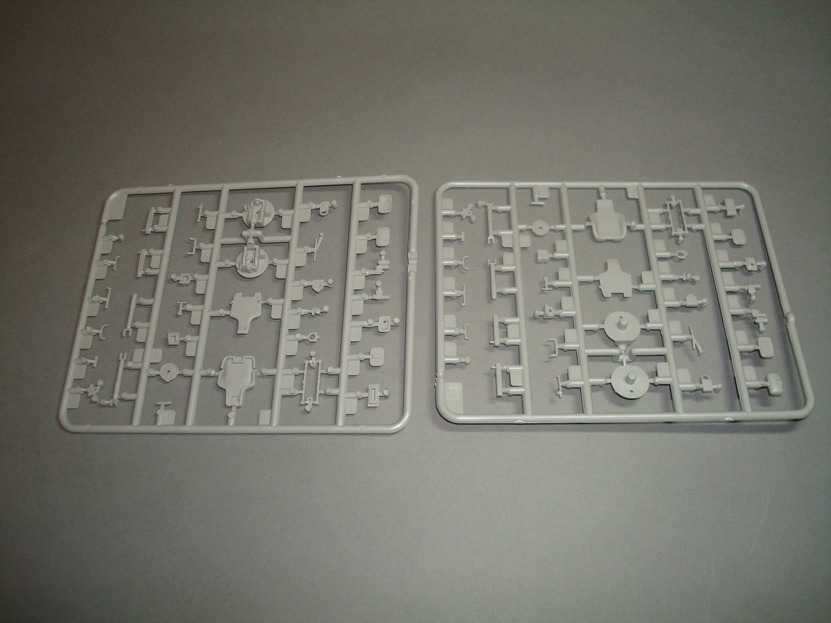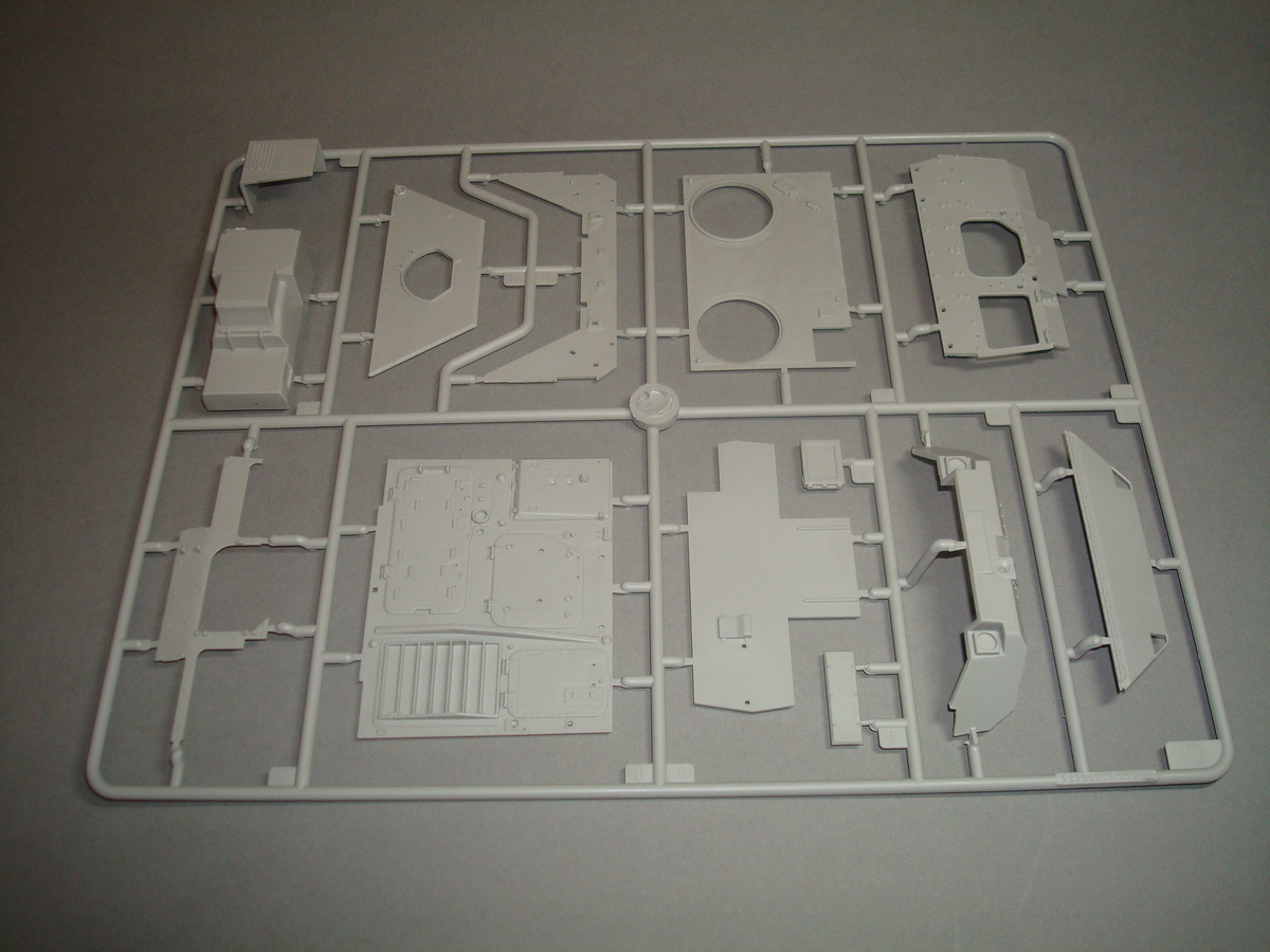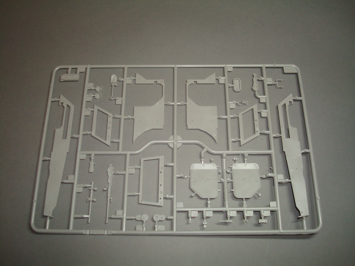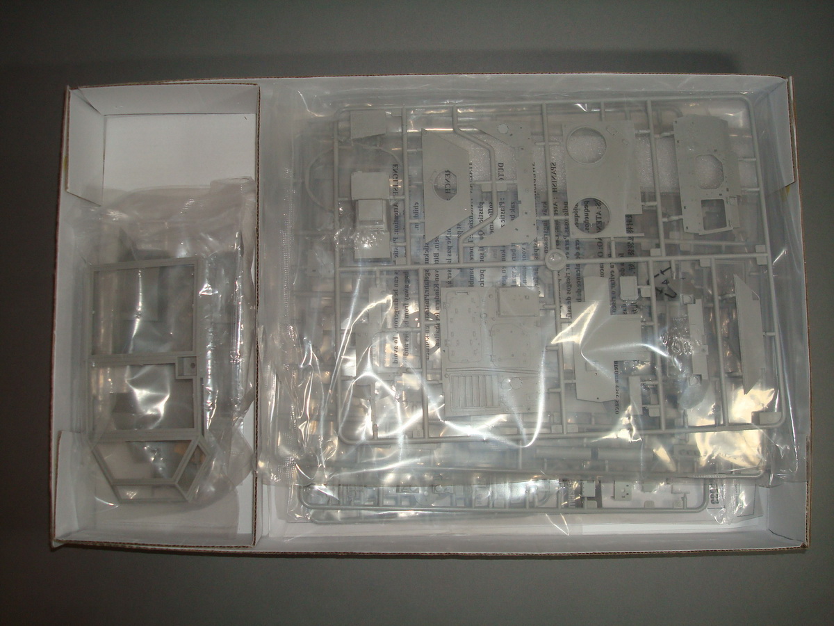 Как всегда , коробка из плотного картона , все литники упакованны в пакеты, травло переложенно плотным картоном. Хрупкие части ( стойки зеркал) перемотанны пористой пленкой. При ближайшем рассмотрении и складывании половинок корпуса, кривизны и облоя не обнаружил. Утяжин тоже. Про качество стыковки... думаю стандартное для трубача. Понравилось наличие интерьера. Качество приемлимое, есть упрощения, но в целом не критично. Так же имеются достаточные уши петлей на корпусе, можно просверлить отверстия и вставить пальцы из проволоки, двери будут рабочими. Плата фототравления приличных размеров, думаю можно будет обойтись родным. Стекляшки в наборе идеальной прозрачности, на смотровом приборе выполненны в виде линз на вставке из прозрачного пластика, это тоже радует. Подвеска достаточно детализированна. Как это все сойдется воедино - покажет сборка.