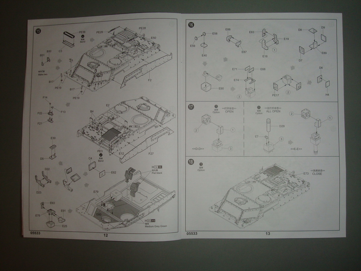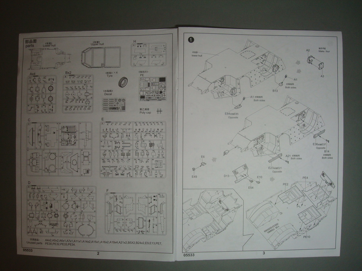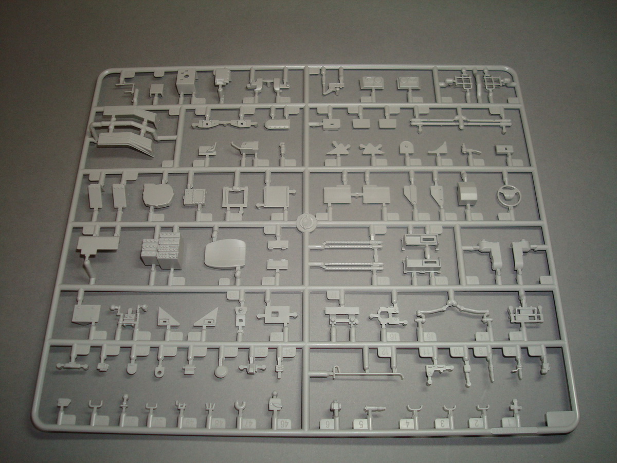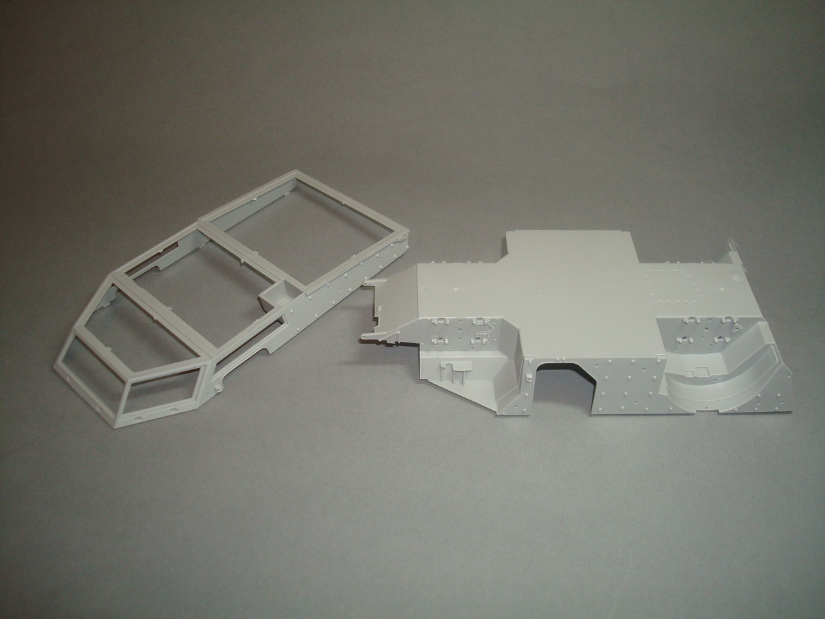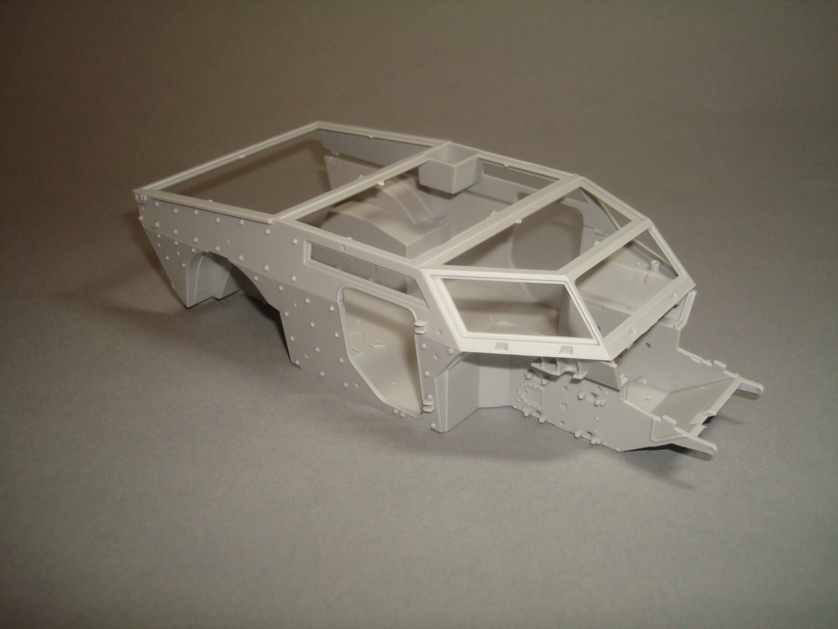 Как всегда , коробка из плотного картона , все литники упакованны в пакеты, травло переложенно плотным картоном. Хрупкие части ( стойки зеркал) перемотанны пористой пленкой. При ближайшем рассмотрении и складывании половинок корпуса, кривизны и облоя не обнаружил. Утяжин тоже. Про качество стыковки... думаю стандартное для трубача. Понравилось наличие интерьера. Качество приемлимое, есть упрощения, но в целом не критично. Так же имеются достаточные уши петлей на корпусе, можно просверлить отверстия и вставить пальцы из проволоки, двери будут рабочими. Плата фототравления приличных размеров, думаю можно будет обойтись родным. Стекляшки в наборе идеальной прозрачности, на смотровом приборе выполненны в виде линз на вставке из прозрачного пластика, это тоже радует. Подвеска достаточно детализированна. Как это все сойдется воедино - покажет сборка.