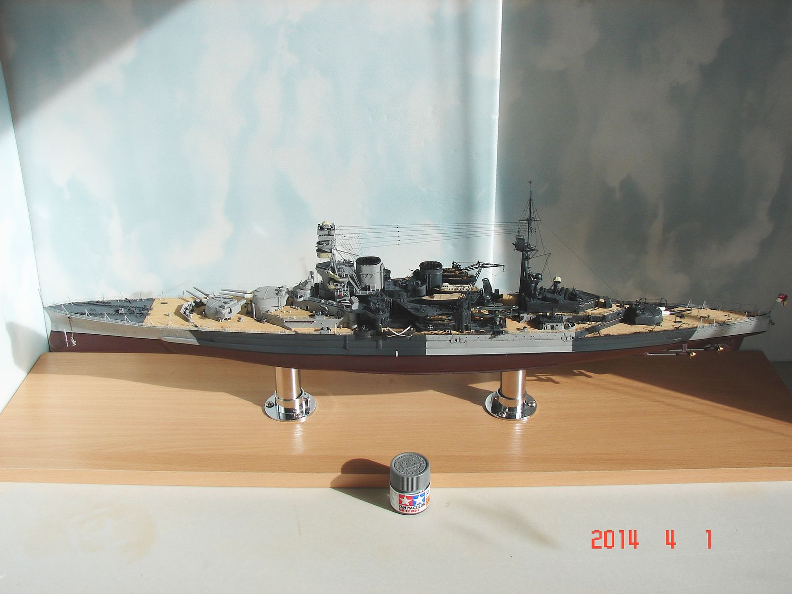 По модели. Эту модель я бы назвал “Корабль, собранный вслепую (в темноте, на полу)”. Первый, доведённый до конца, Трумпетер. Первый корабль, не крашенный с помощью аэрозольных баллончиков. Только аэр и кисть. Модель, на которой я впервые применил парафильм (спасибо, Данила). И последний, думаю, такой большой корабль, мною собранный (хотя Трумп анонсирует “Техасы” в этом году…). Кроме самой модели имелось в наличии: набор Flyhawk для Repulse, который, казалось, никогда не закончится, деревянные палубы от Ка-моделс (основная) и от Artwox-a (дополнительная), цепи (основные) от того же Artwox-а, стволы для пом-помов от Мастера, травлёные магнитные кабели от Хаси (спасибо, Юрий), сухие декали от Понтоса (спасибо, Сергей) и декаль от Бегемота, смывка X-19(Smoke) и AK 304, такелаж - спандекс.