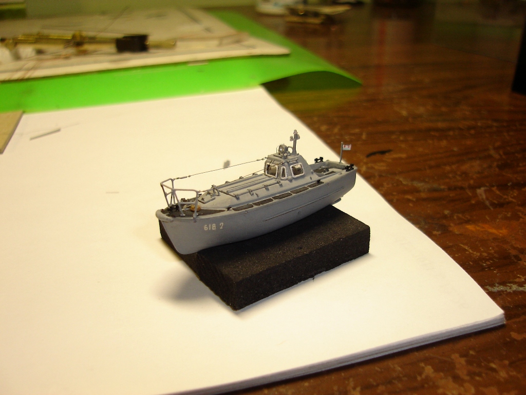 Красилось все аэрографом используя водоразтворимую серую краску Life Color. Износ и старение почти не делались, поскольку на всех фотографиях катера выглядят в хорошем состояние.