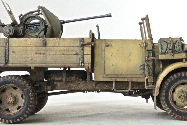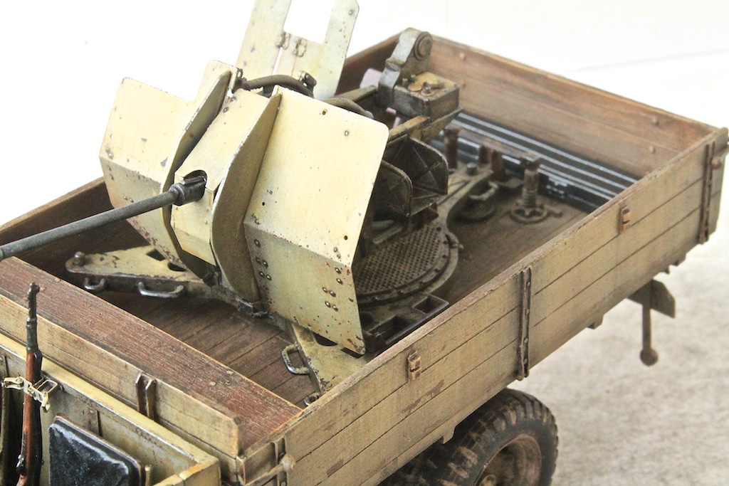 Сделано здОрово. Но в кузовах грузовиков подобные автоматические пушки устанавливались на специфических подставках-"салазках", которые фиксировались между бортами. Иначе при ведении огня орудие "уедет". Думаю, Вы без особого труда подобную штуку соорудите, и без покупки афтермаркета.