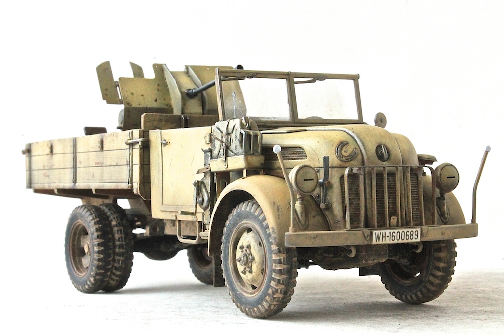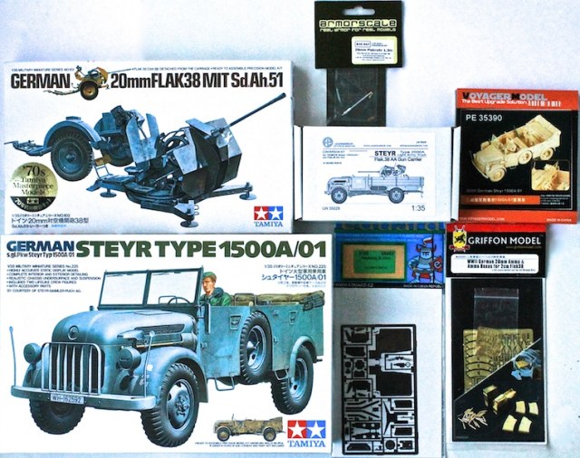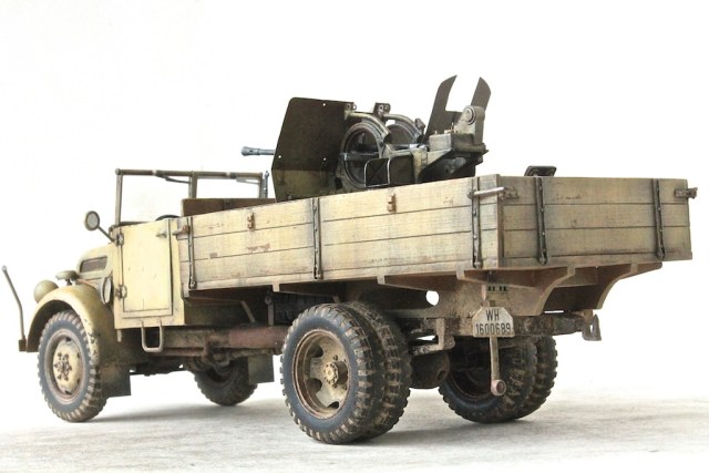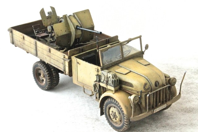 Конверсия. Армейский автомобиль Steyr с пушкой Flak38. Машина, из известного Тамиевского кита. Пушка, старые Тамиевские дрова, на которые, сложно найти травление. Нормальное качество смолы от украинской фирмы Leadwarrior. Конверсию делал впервые.