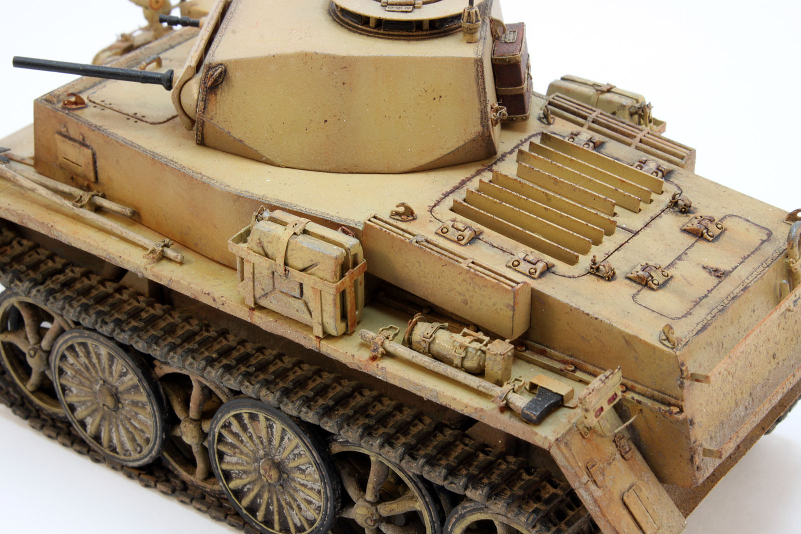 Основные недостатки пластика - не налезающая гусеница и подозрительно маленький люк в башне. Остальное похоже на фотографии, на мой непрофессиональный взгляд. Гусеницу от Фриула я купить пожалел, и наверное зря, и не было бы проблем и с облеганием звездочки и с фактурой трака.