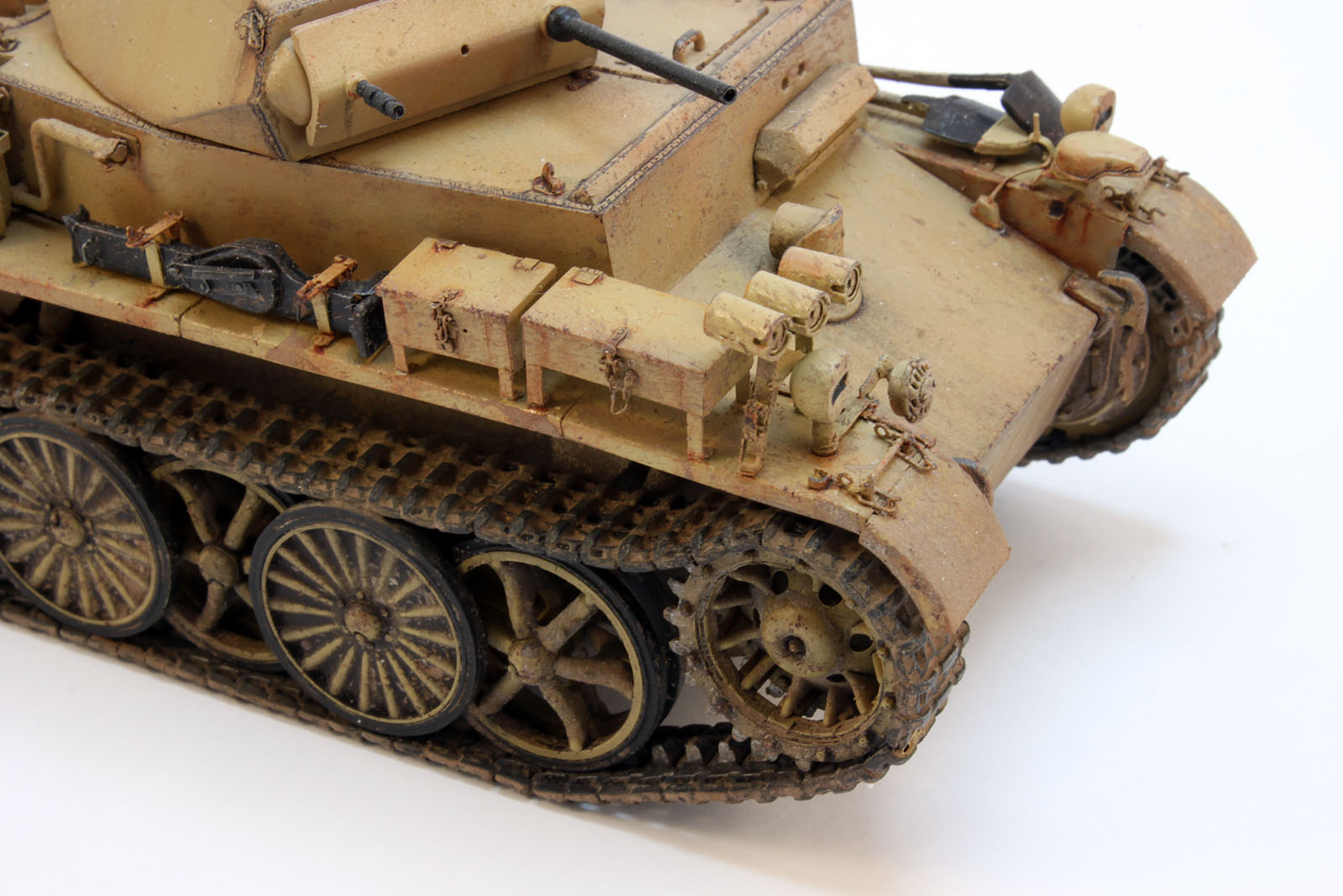 По краске ничего особо интересного. Грунт Тамия из баллона, легкий прешейдинг черным, потом базовый желтый Тамия. Сколы, смывки, пигменты. Пигменами брызгал активно, скорость 80 км/ч это не шутки!