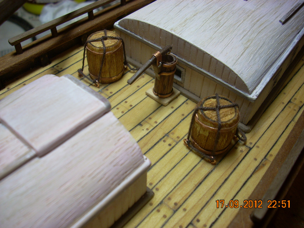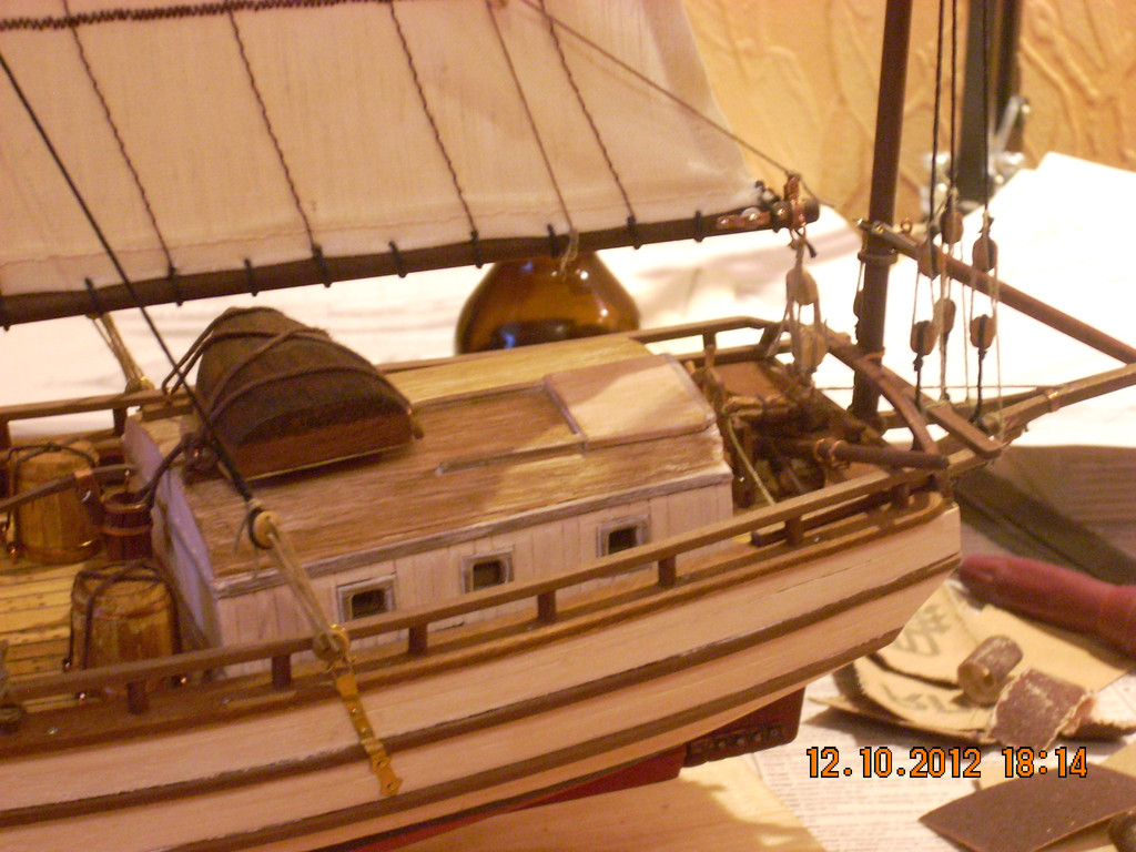 здравствуйте, я хотел б рассказать как сделать лучше. для имитации досок вы просто расчерчивали карандашом ,но можно было нарезать резать реек и собрать наборную палубу и надстройки как сделано тут http://karopka.ru/community/user/22993/?MODEL=485090 и тут http://karopka.ru/community/user/20438/?MODEL=485170