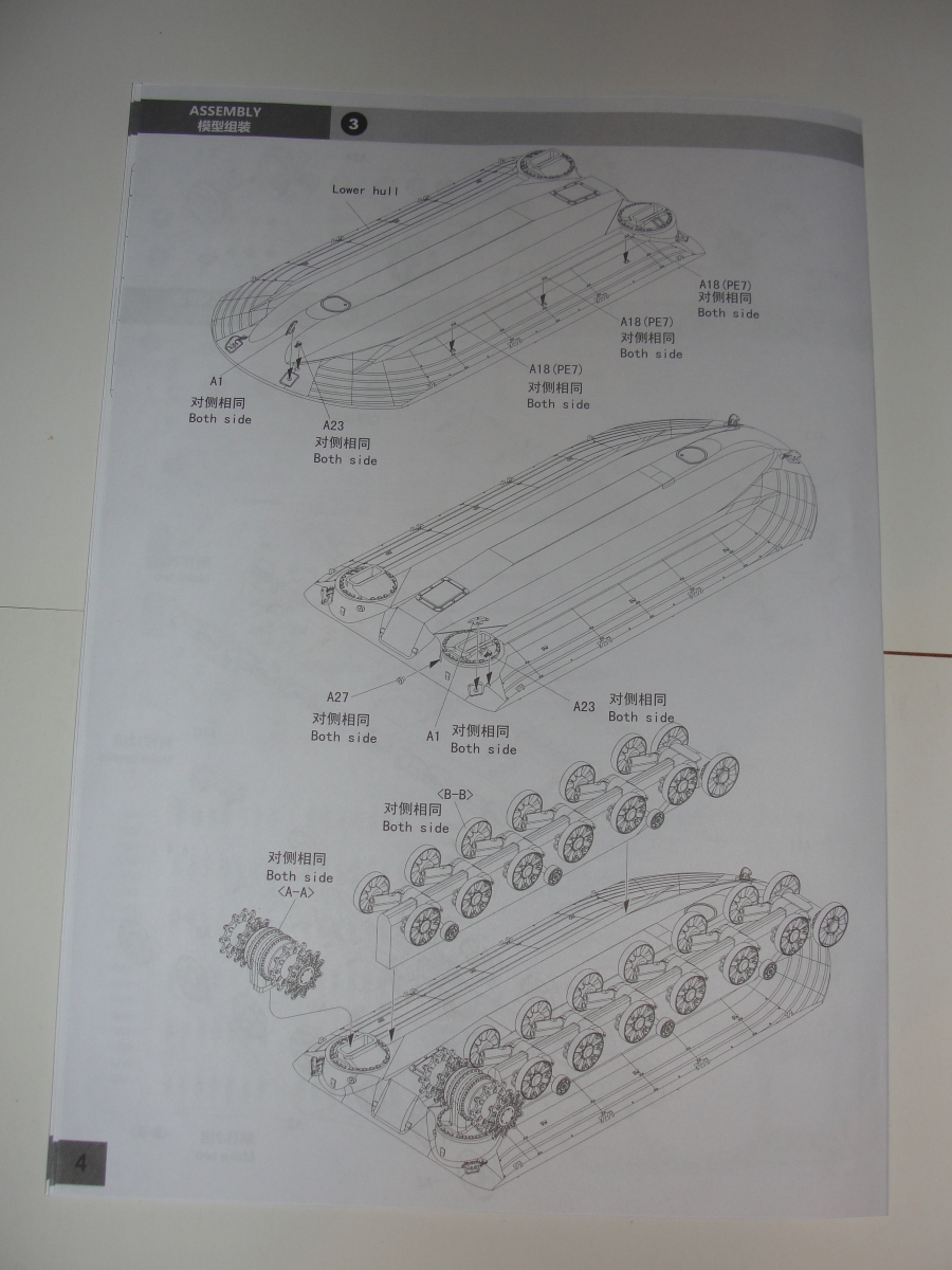 В целом модель по исполнению похожа на вариант от Takom и расшивка корпуса выполнена похожим образом единственное её отличие от двух других производителей (Amusing hobby и Takom) то что боковые противокумулятивные экраны выполнены отдельными деталями.