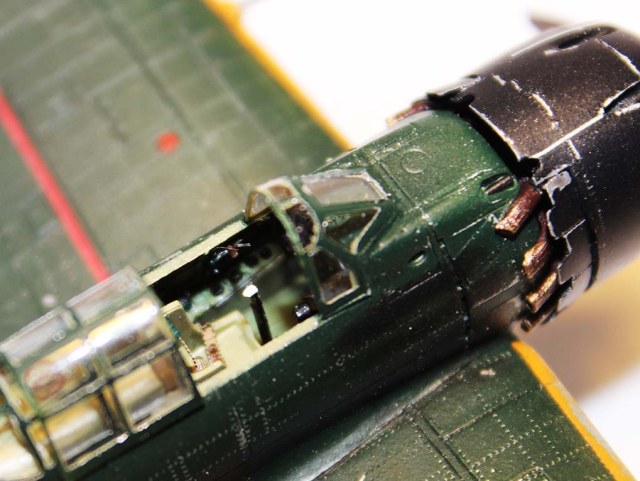 4) Бронестекло за головой пилота имело несколько иной вид, то что в наборе похоже (ИМХО) скопировано с музейной машины-новодела (??), в любом случае у него есть оправа и подушка для головы - её можно покрасить. Можно и вобще снять за некопийностью - так часто поступали.