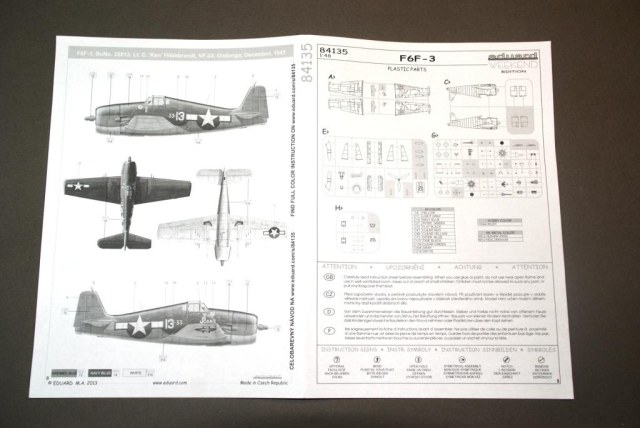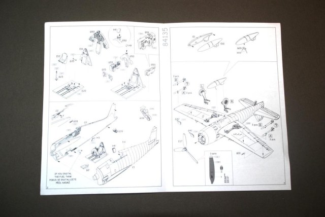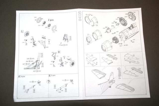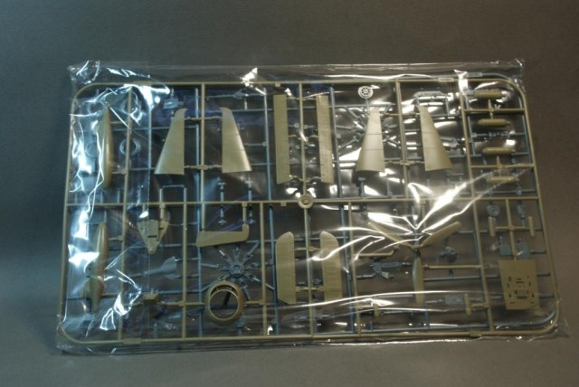 Теперь о том что лежит в нутрии коробки. Внутри находятся четыре литника с деталями которые по два упакованы в пакеты, один литник с прозрачными деталями, инструкция и декаль на один борт. Пластик из которого сделан самолет достаточно приятный на ощуп, но что меня удивило так это то что детали из разного по цвету пластика.