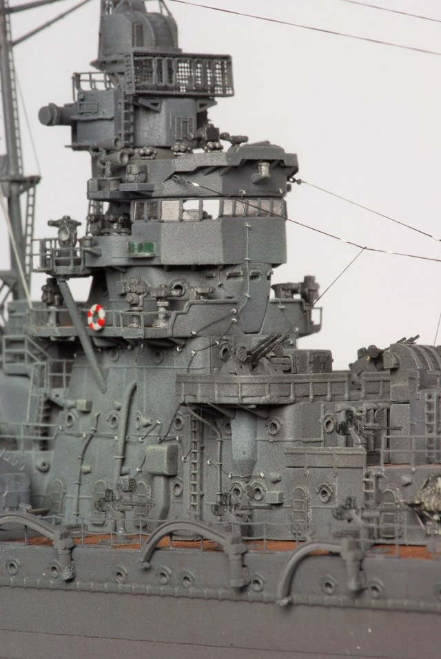 Насколько знаю у японцев, на кораблях использовалось три разных вида леерного ограждения, в зависимости от яруса. Но честно говоря конкретно по Яхаги я этот вопрос доверил исключительно Хасегаве. Все леерное ограждение из родных наборов Хасегавы установлено по инструкции! Но оно довольно похоже на правду.