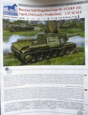 Модель от Бронко СУ-152 ранней серии,думаю эта модель пока лучшая на данный момент.Бронко предлагает СУ-152 Апреля 1943г.