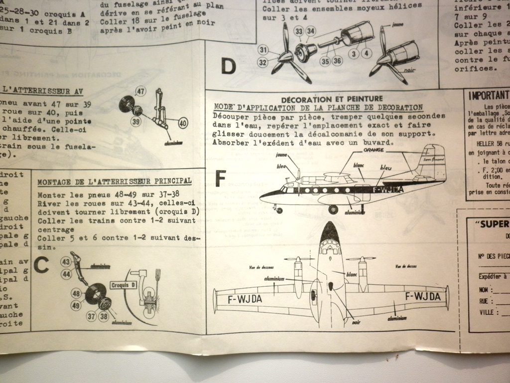 Инструкция , пожелтевшая от времени отличается тем , что текста значительно больше чем в современных моделях. Но зато он преимущественно французский ( количество английских пояснений минимально). Впрочем , немногие рисунки вполне подробно описывают процесс сборки этой простой модели.