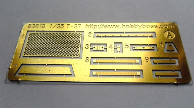 На плате фототравления находится сетка, мелкие детали крепежа. Фототравление довольно толстое, аналогичное Т-26.