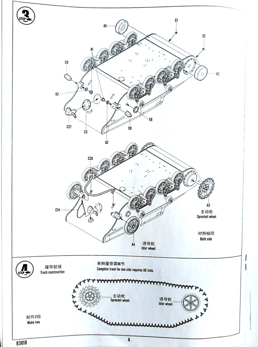 Не вижу ни чего сложного....только собирать и формировать гусеничные ветки нужно до приклейки крыльев....гусеницы довольно короткие, собираешь верхнюю ветку, устанавливаешь на модель, собираешь нижнюю,устанавливаешь и ждёщь полного засыхания клея,снимаешь, красишь и окончательно устанавливаешь