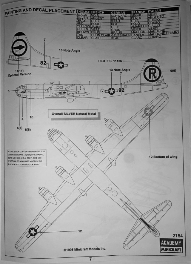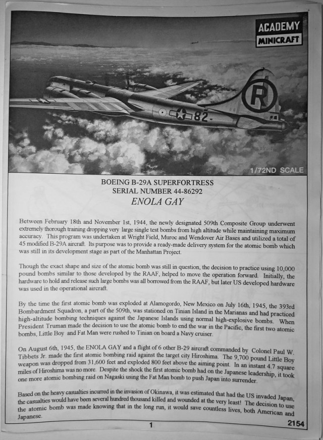 - Декаль на один вариант окраски "Enola Gay".