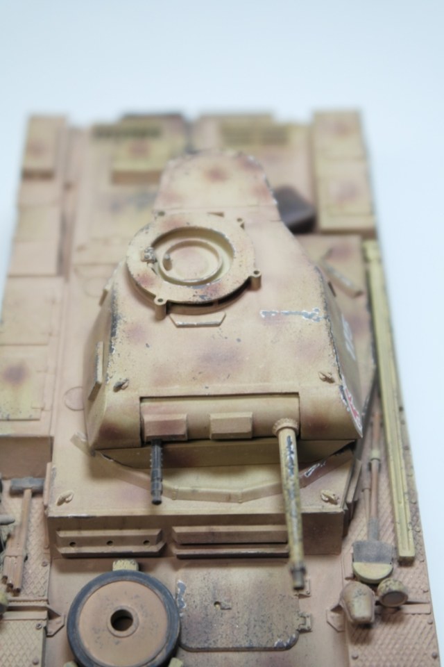 Если оценивать только покраску, то: бандажи окрашены неаккуратно; ствол на двойках в базу не красился, т.е. должен быть цвета вороненой стали как минимум; база и камо вроде нормально получились, так что новый аэр объезжен удачно; смывки толком нет; сколы местами нормальные, местами неудачные. Ну а в остальном вся эта модель сплошное тамийское недоразумение, еще и дополненное некачественной сборкой.
