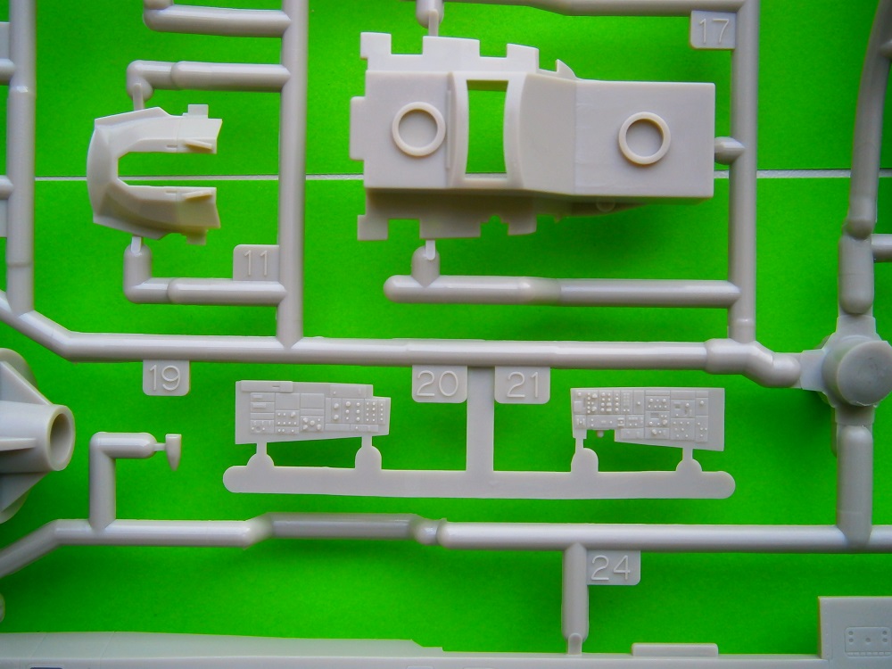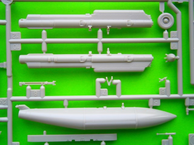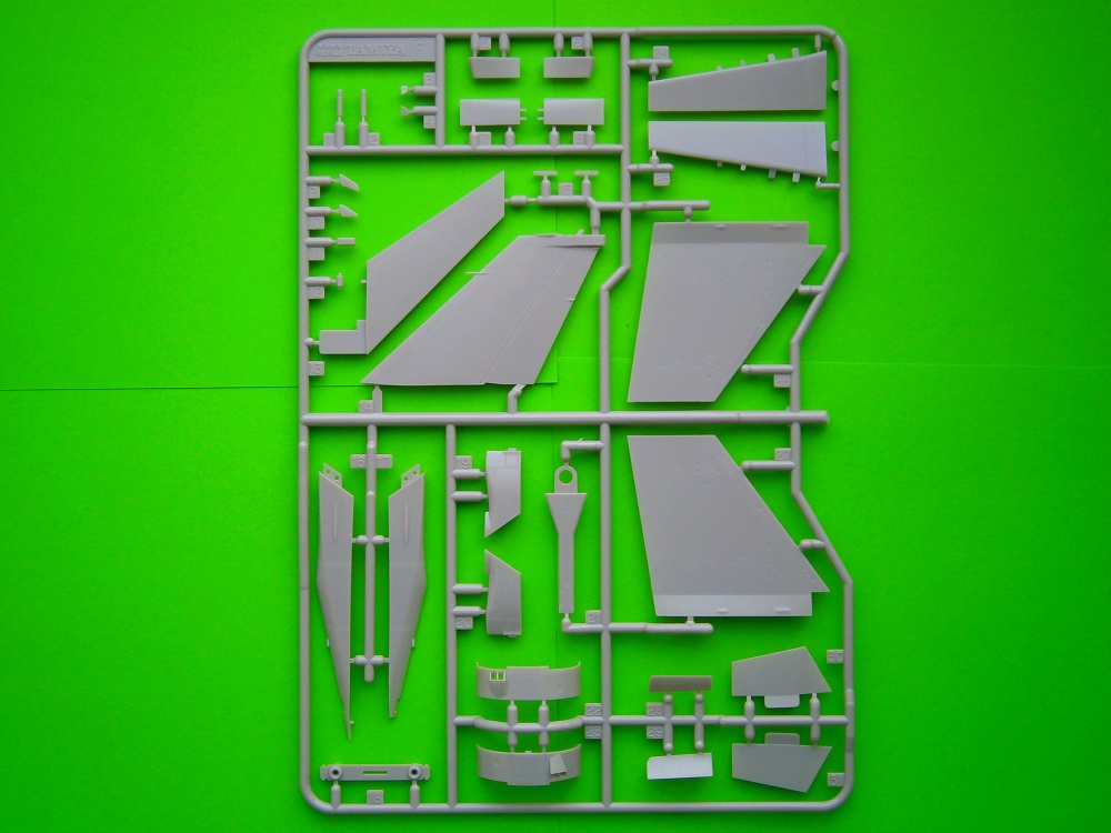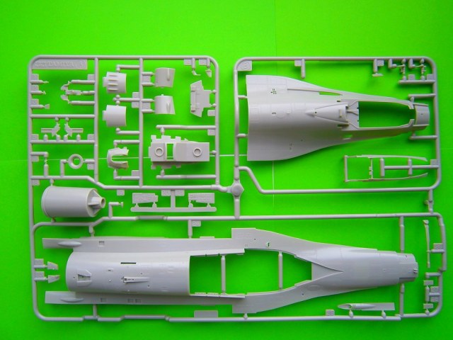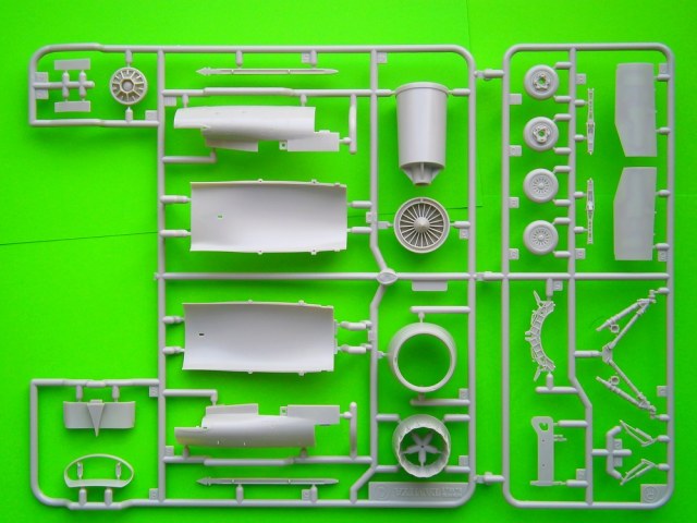 В красочной картонной коробке находится девять литников с деталями модели модели самолета отлитых из светло- серого цвета и два литника из прозрачного пластика это остекление фонаря кабины пилота. Все детали хорошего качества, имеют четкий тоненький крой и деталировку. Также хорошо проработаны заклепочные швы и эксплуатационные и технологические лючки. Все детали без облоя и утяжин.
