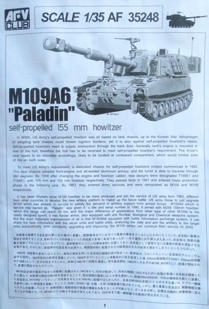 Модель американской САУ от AFV. Качество литья хорошее,на замену трос (нить) и гуси(винил).Если я не ошибаюсь модель свежая.Инструкция в виде книжки для 5 вариантов окраски.