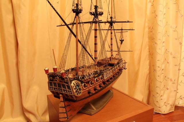 В витрине действительно смотрится красиво! Эх, фото бы еще побольше. Хоть и не великий спец, но косяки также нашел (переразмер блоков и т.п.). Жалко - корабль очень красив. Цвт очень понравился и кормовой декор. Не забрасывайте его в таком виде....можно такую вещь сделать!!!!!