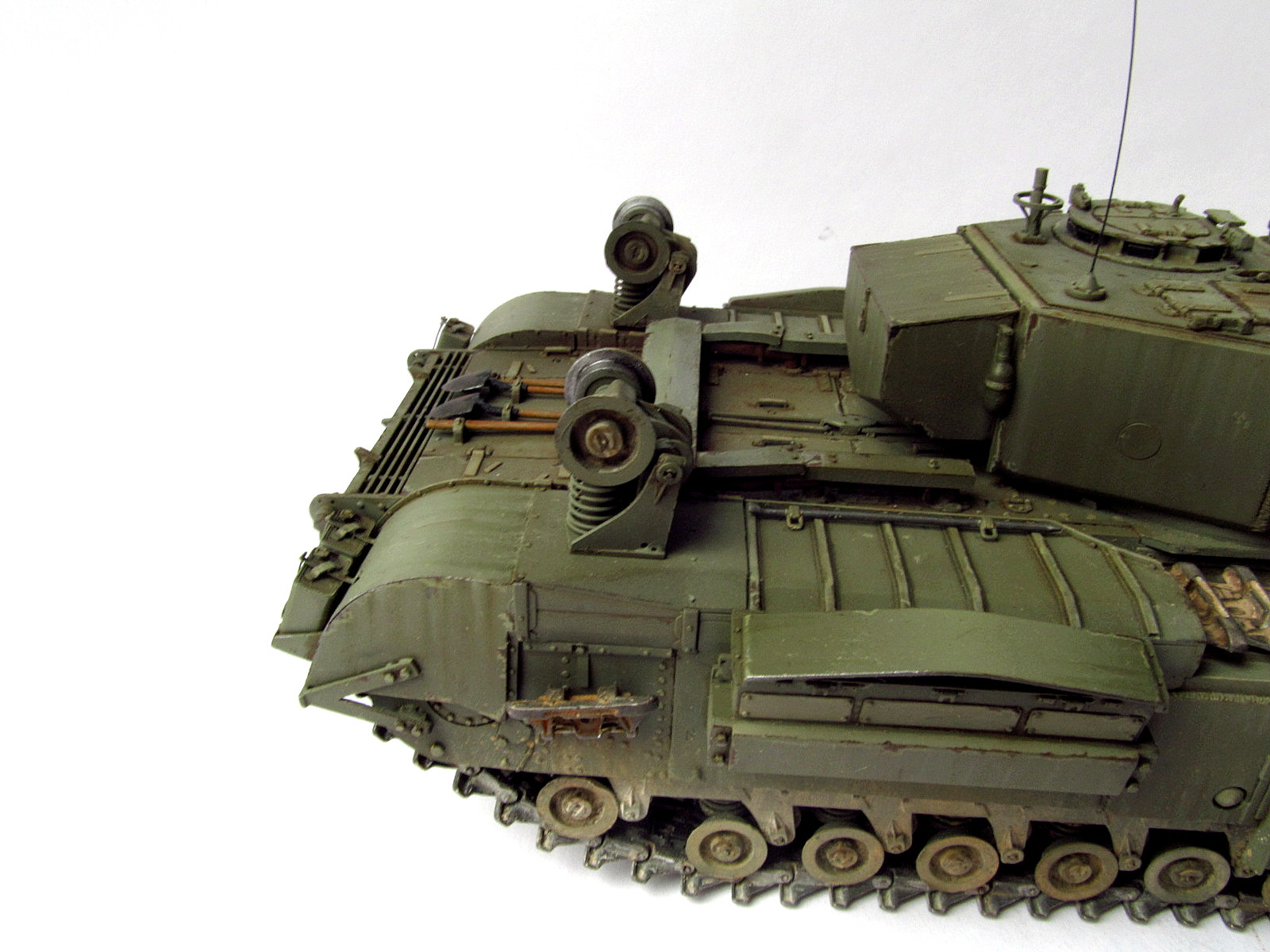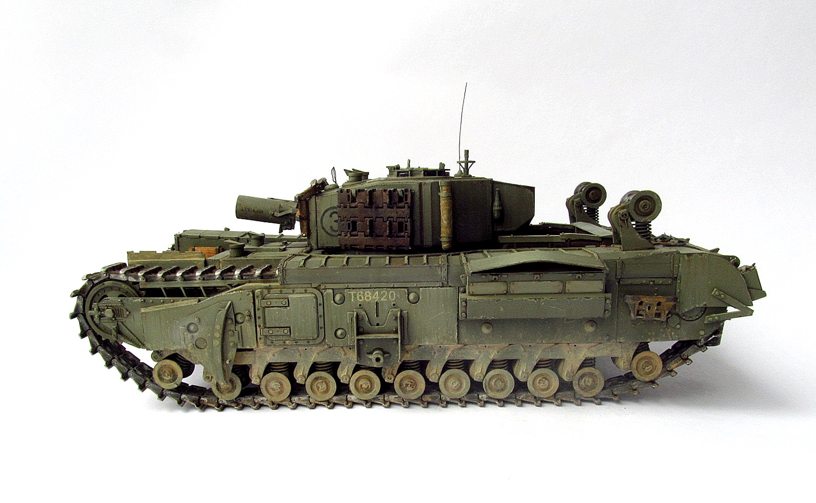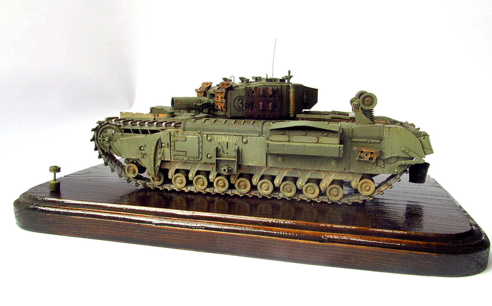 Доброго времени суток, представляю Вам свою работу, именно ради третьего Черчилля я и начал свой путь в моделизме, прошло некоторое время и десяток работ, и вот я решил воплотить свою мечту. Модель очень интересная всем советую, много рабочих элементов. Модель дополнена фарами эльф, и траками от Сектора35. Сборка проходила без особых трудностей, всё собиралось буквально на щелчку. Изучив мат часть набора понял, что можно изменить геометрию приборов наблюдения на башне, но не стоит, так как сдвинуть надо было менее чем на треть миллиметра, я считаю что это не критично. Соответственно в Мат.часть не вдавался.